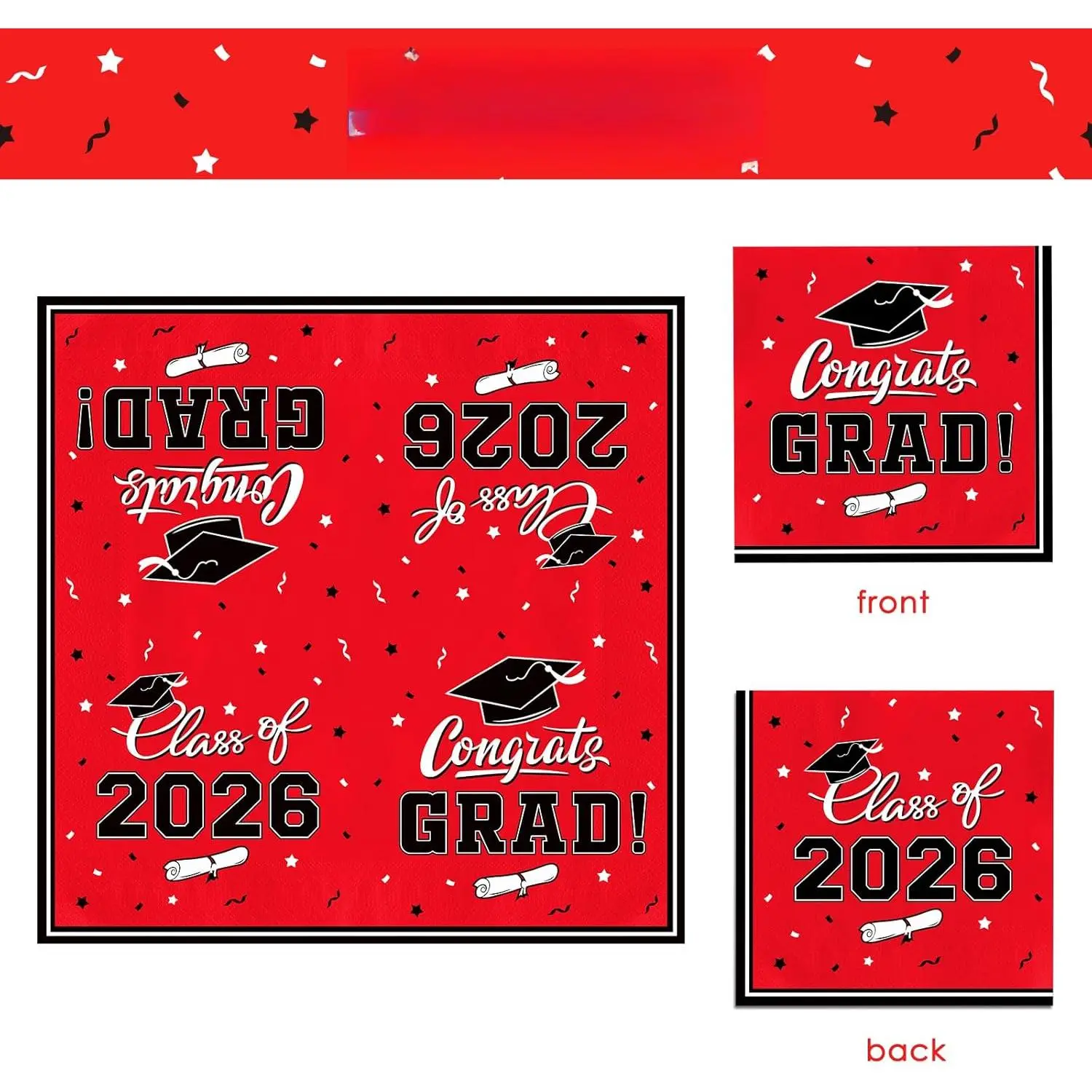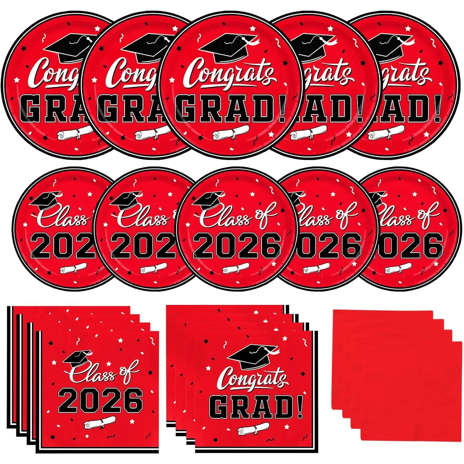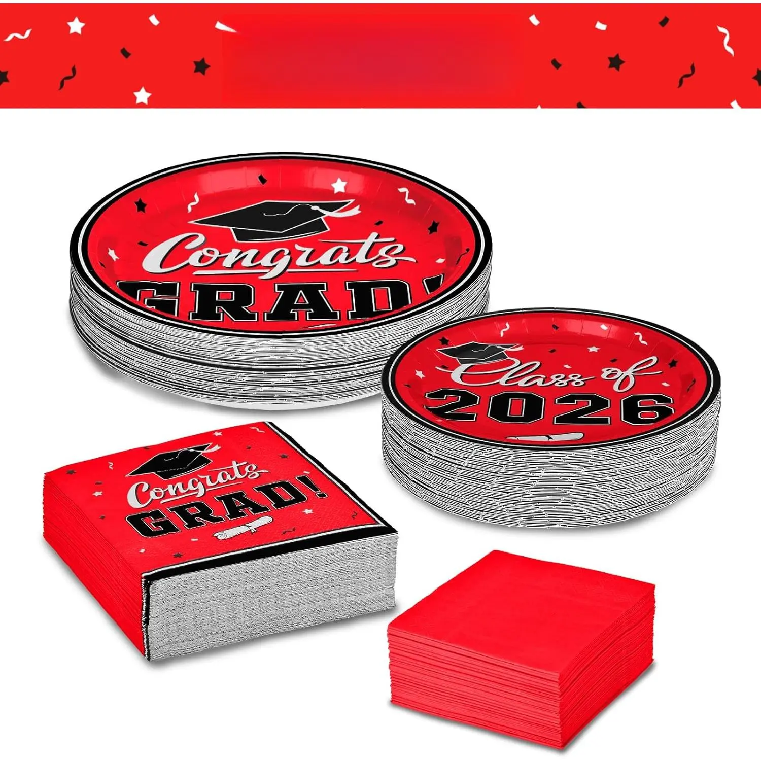 Graduation decorations 2026 Graduation Party Plates and Napkins Red Disposable Paper Plates Luncheon Napkins Cocktail Napkins for Congrats Grad Party Decorations, Serve 50