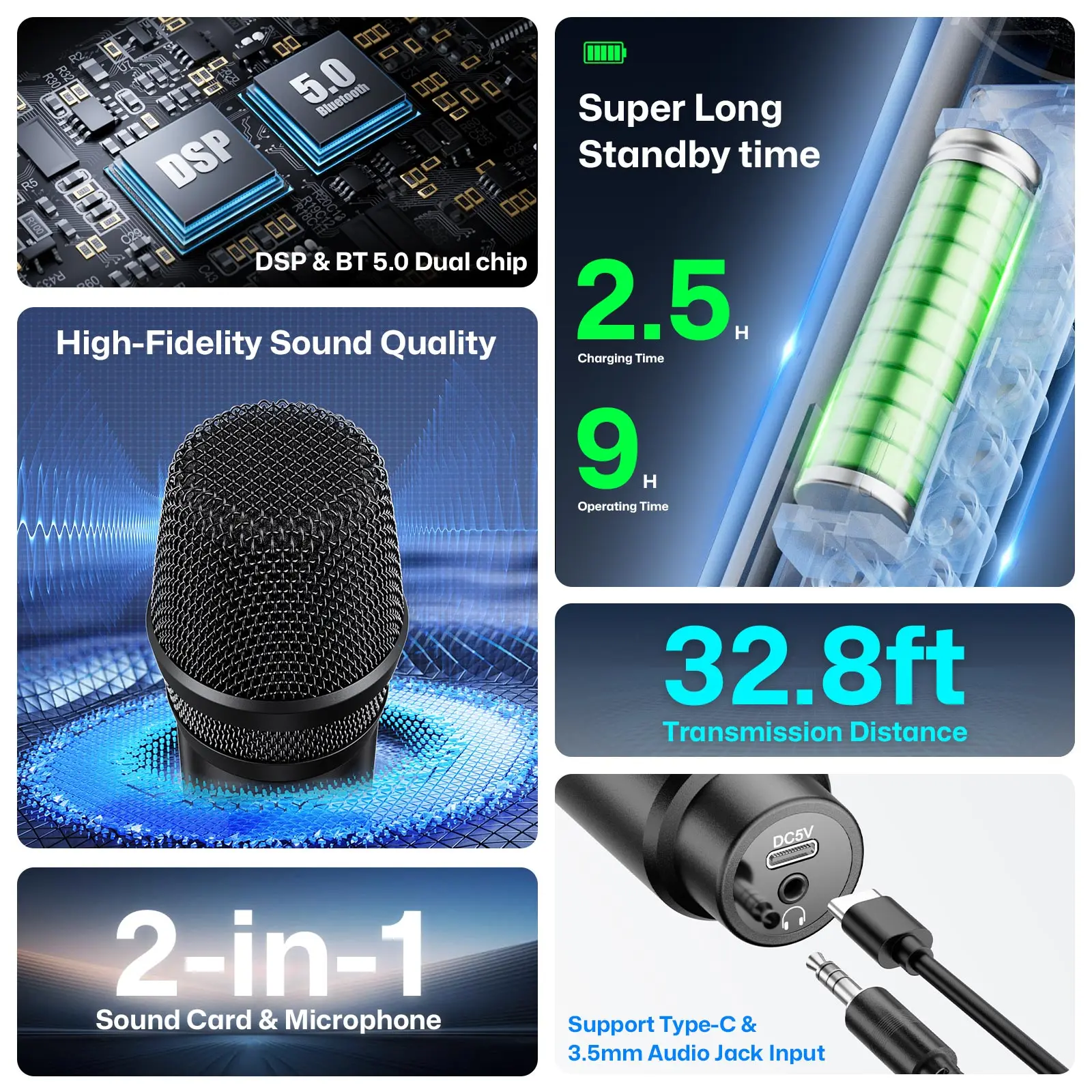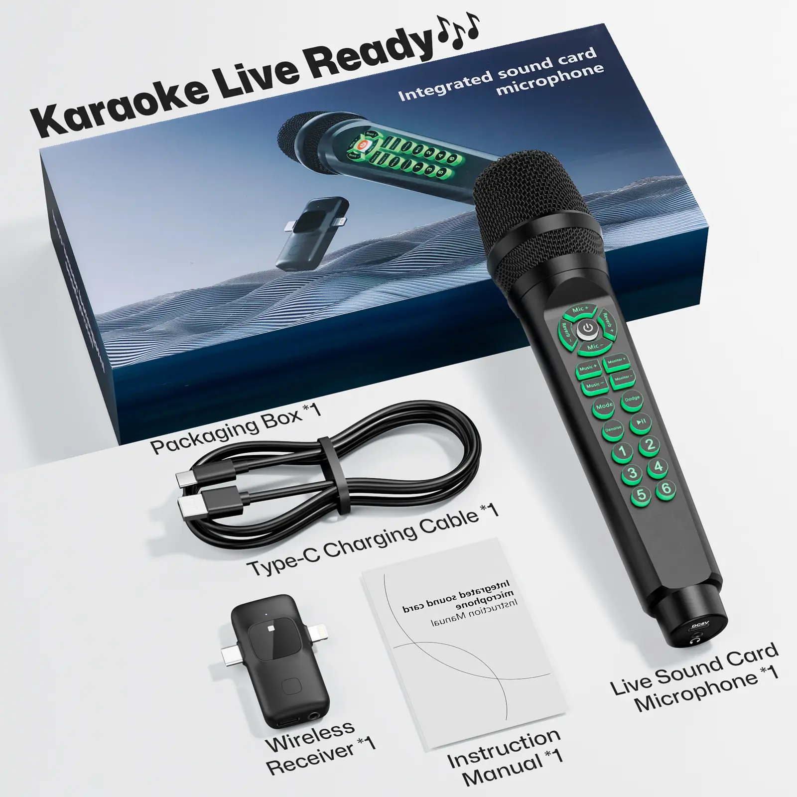 Innovative 2-in-1 Design - Integrates a professional sound card and wireless microphone into one unit; plug and play, no complicated setup required.