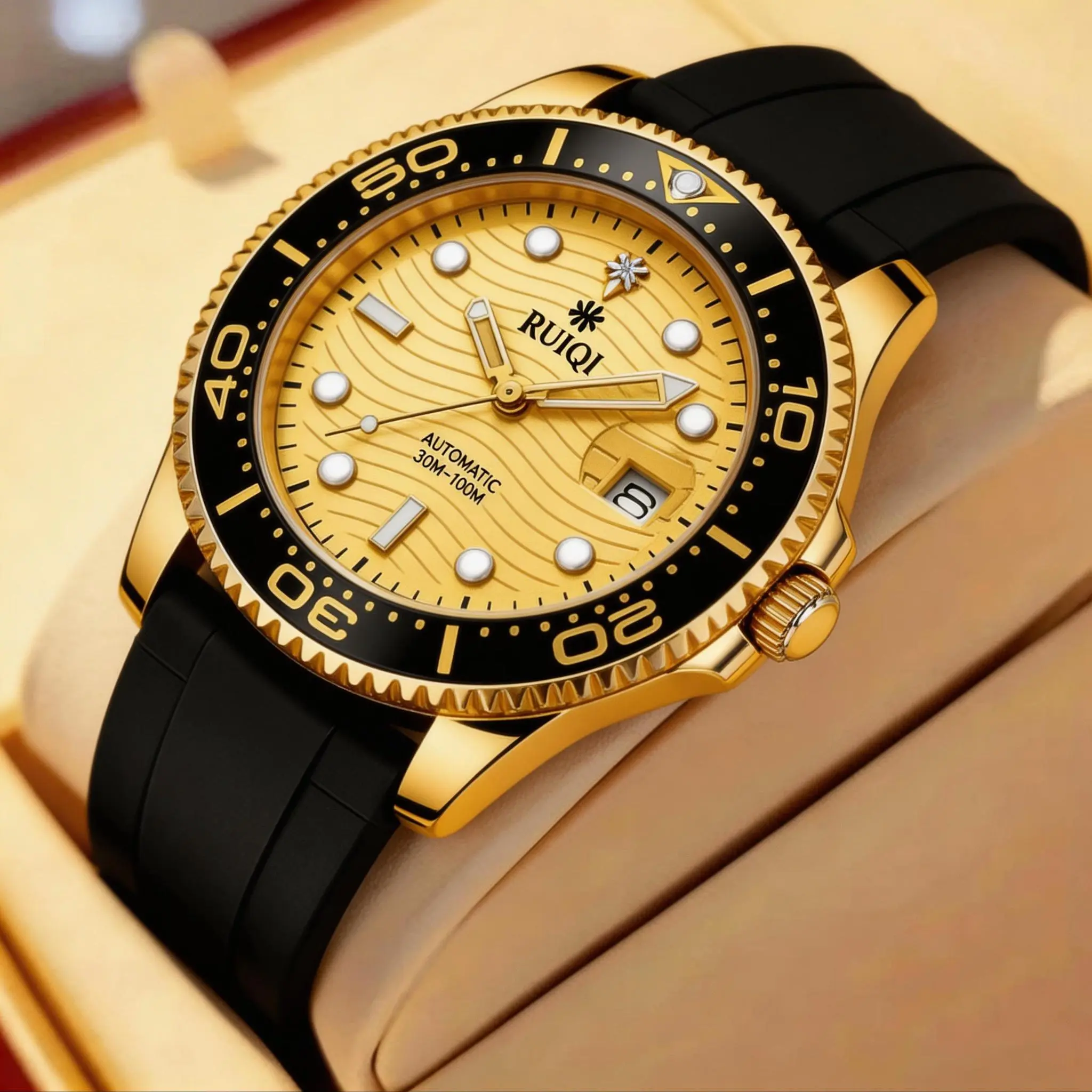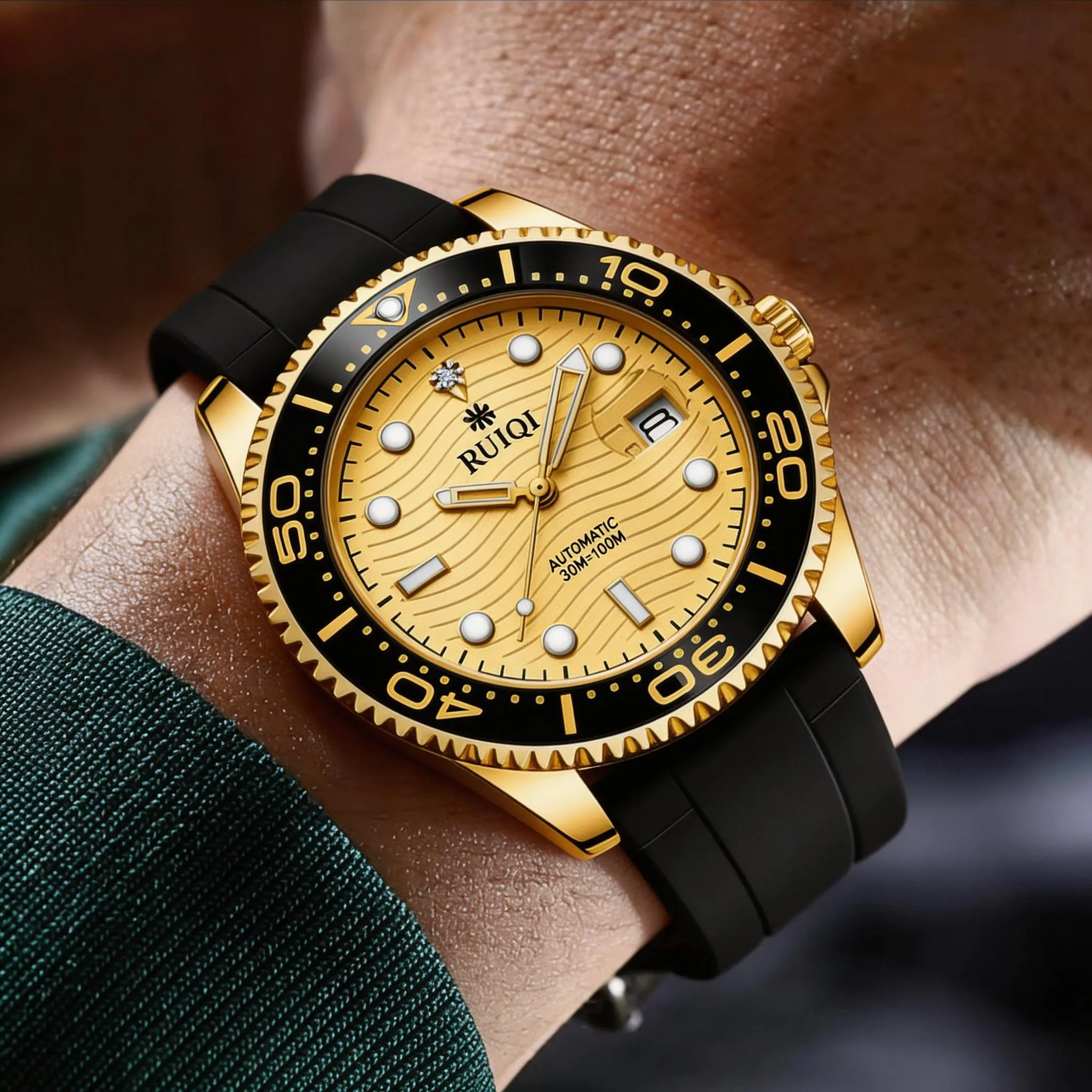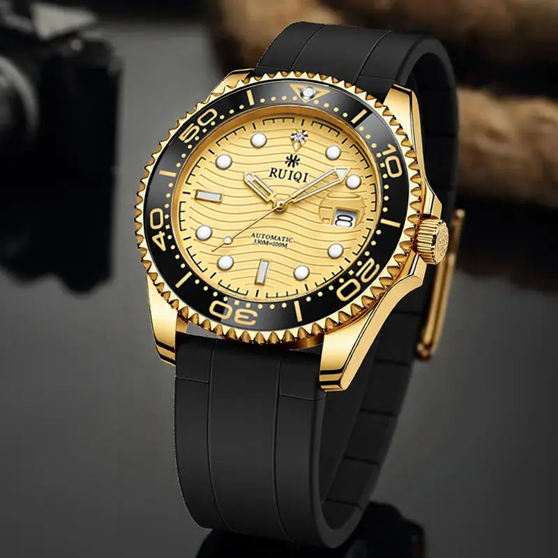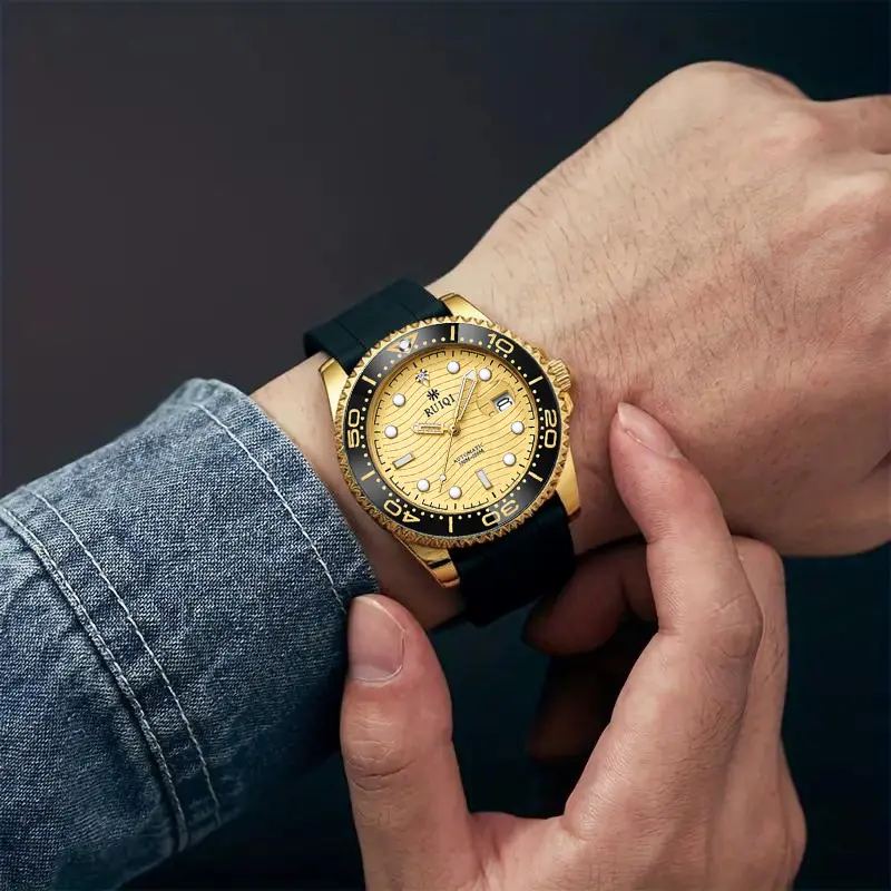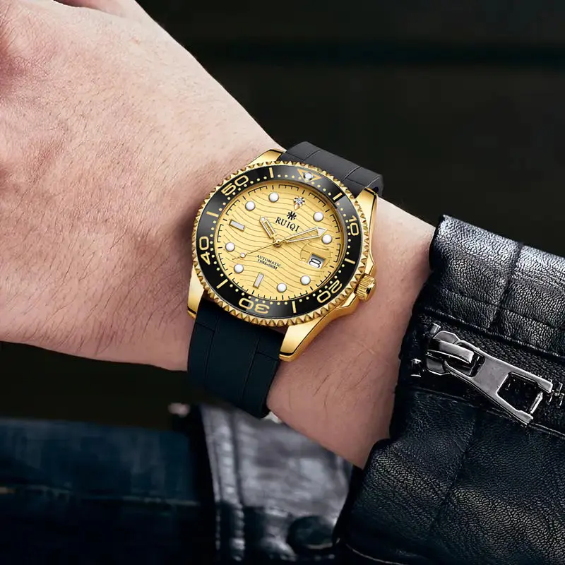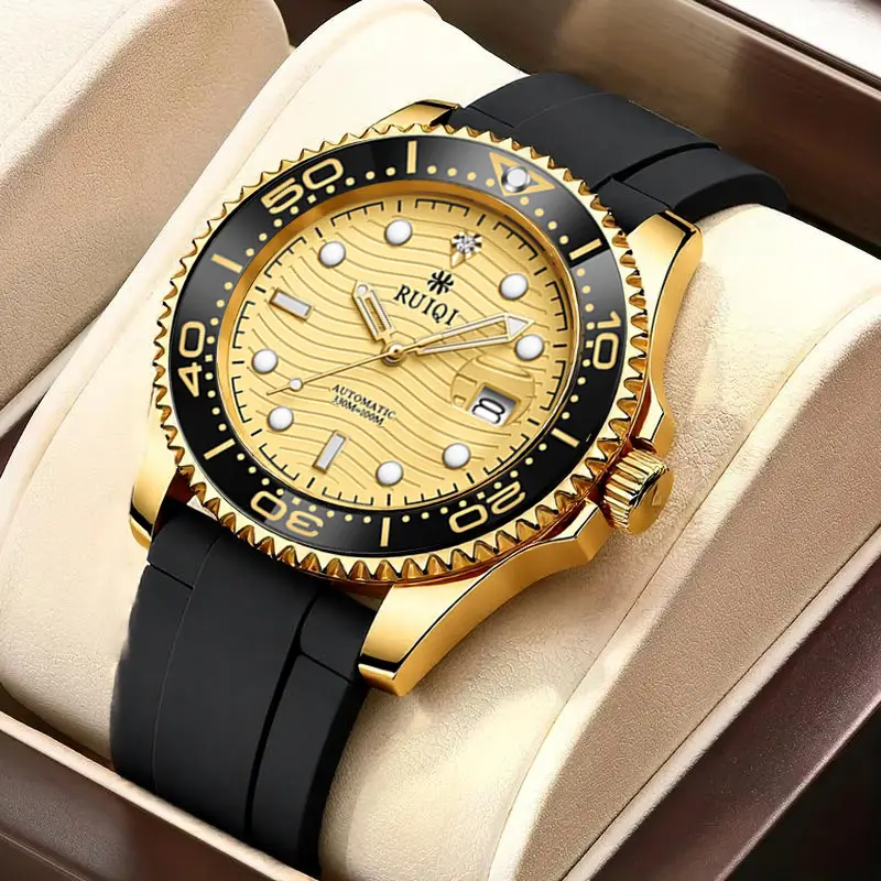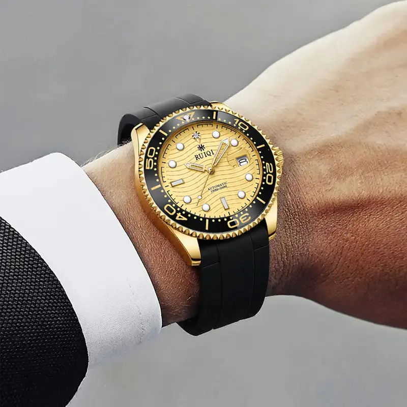 RUIQI Rotatable Dial Luminous Pointer Scale Mechanical Watch Men's Sports and Casual Watches