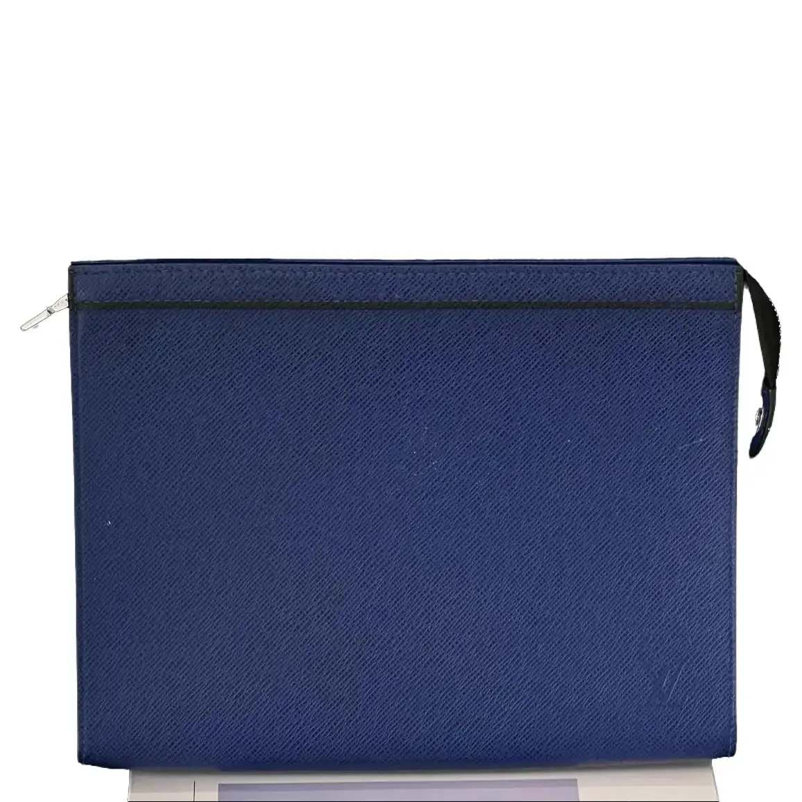 The LOUIS VUITTON VOYAGE Blue Leather Toiletry Pouch Clutch is a stylish accessory. It features a sleek blue leather design, perfect for travel or everyday use. The clutch includes silver hardware, adding a touch of elegance. Ideal for organizing toiletries or as a clutch, this item combines functionality with fashion.