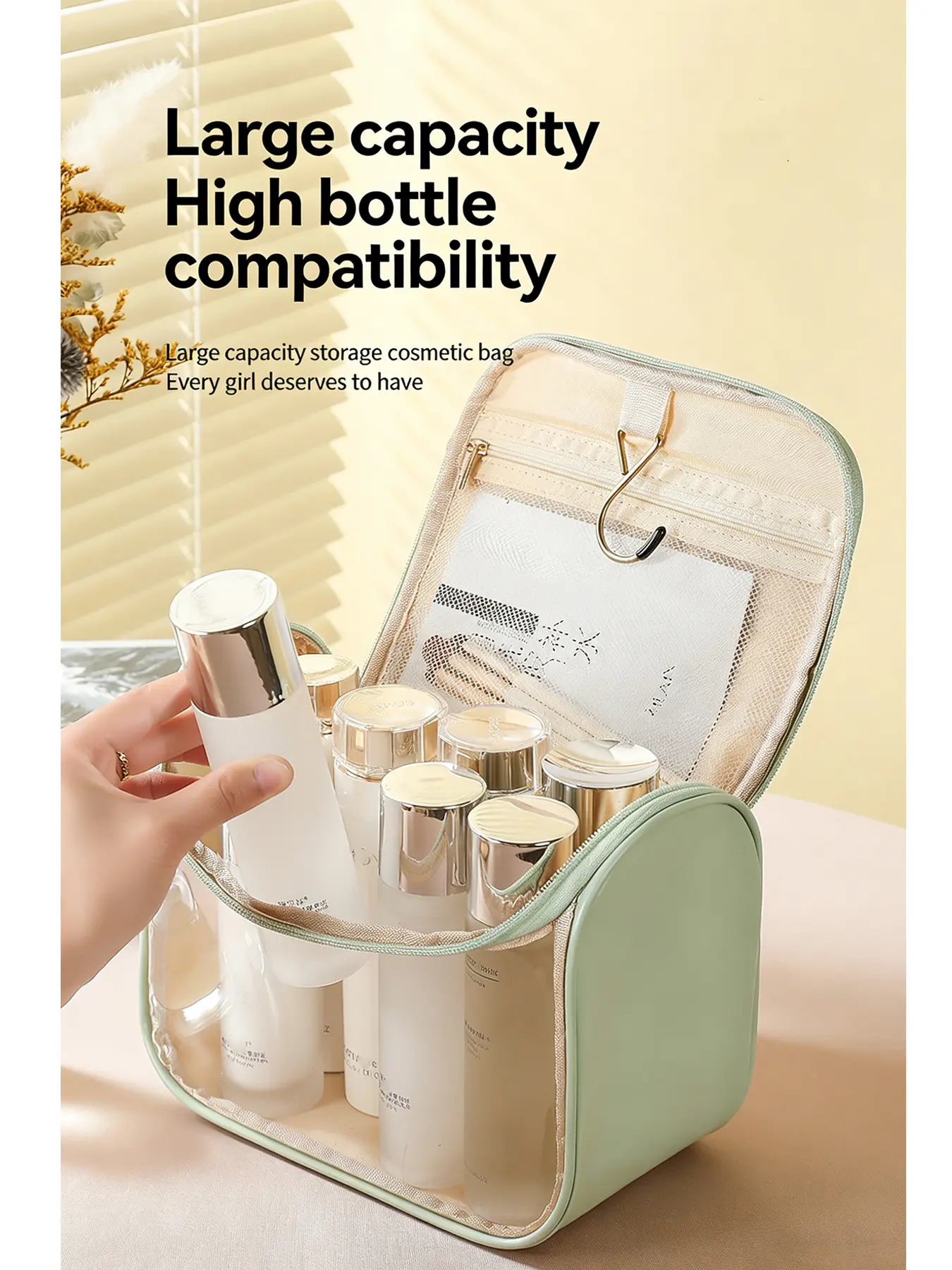 Portable Multi-Functional Transparent Makeup Bag, Travel Organizer, Daily Use, Waterproof Cube Design, Large Capacity Storage Bag