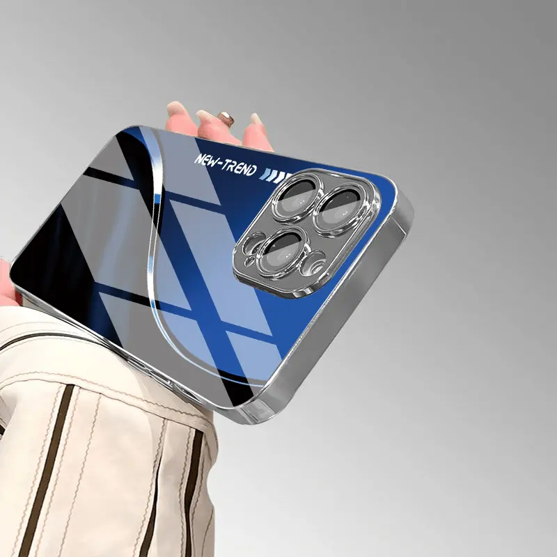 Blue and black striped pattern design, creative phone case with lens protection, suitable for iPhone 17 16 15 14 13 12 11 pro max, is a very good gift