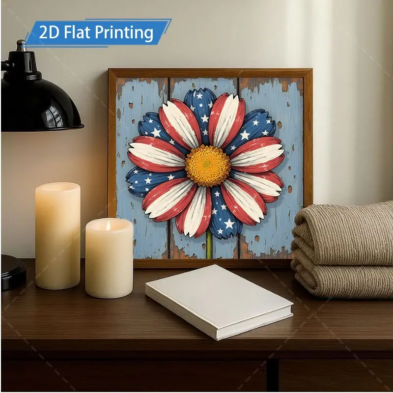 8x8inch Horizontal Wooden Sign - Patriotic Daisy Flag Framed Wall Art, Rustic Farmhouse USA Theme Suitable for Kitchen Bathroom Living Room Decor, Thick Wood Board Decoration for Home Gifts, Tabletop or Hanging Display,250th Anniversary