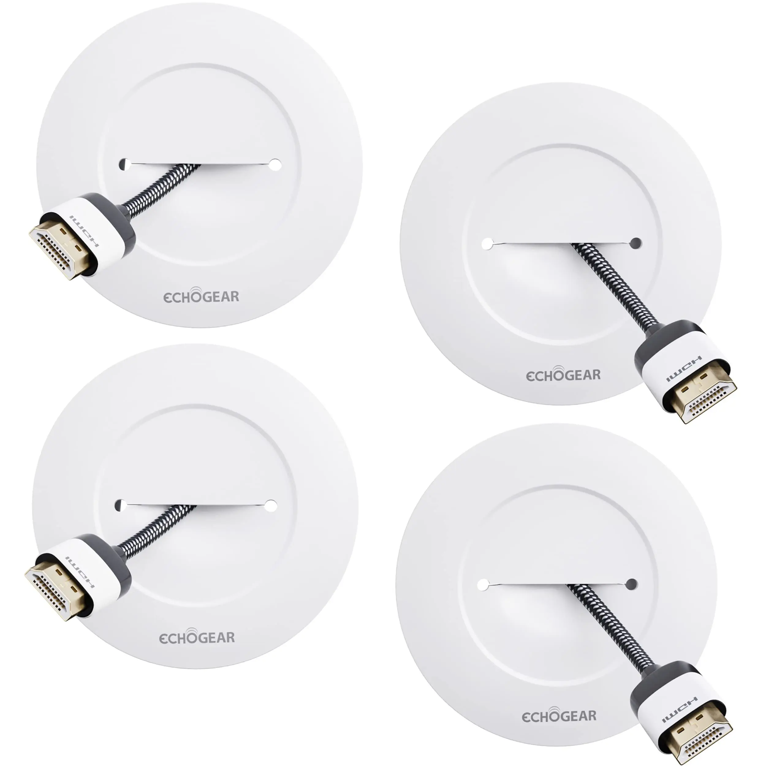 SUNDAY MIRTH ECHOGEAR TV Cord Hider for Wall Mounted TV 4 Pack - Cable Management Kit Hides TV Wires - Includes 2 Pass Throughs, Locking Brackets, and Hole Saw Drill Attachment (White)