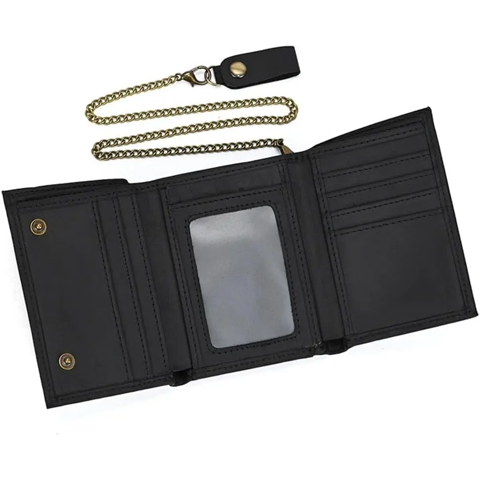 Mens Wallets with Chains, Trifold Wallet RFID Blocking Anti- Chain for Biker,