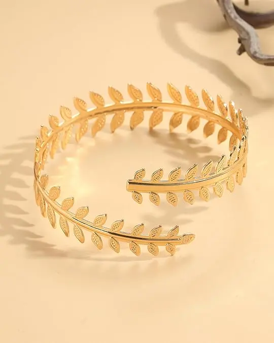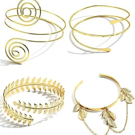 ARM CUFFS FOR WOMEN: One order includes 4 pieces of minimalist upper arm bangles in 4 styles, leaf bracelet, feather arm cuff, wide band cuff and goth cuff bracelet, enough for meeting your various needs