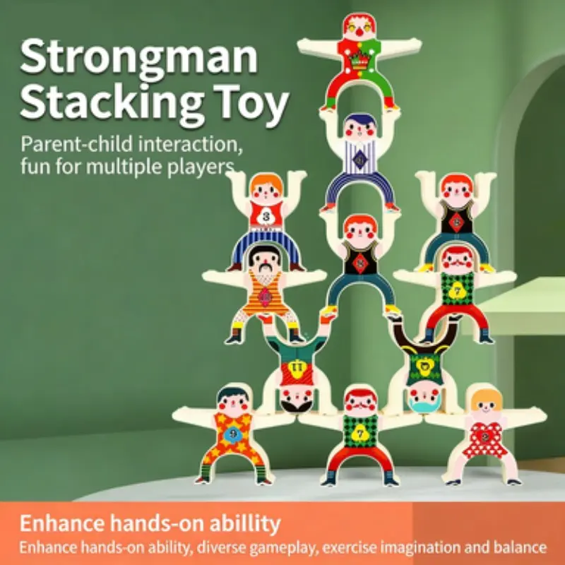 Stacking Toy Set, 16 Piece Circus Acrobats Interlocking Blocks, Balance Building Game Puzzle Toys for Kids Aged 3+, Adult Playtime Fun
