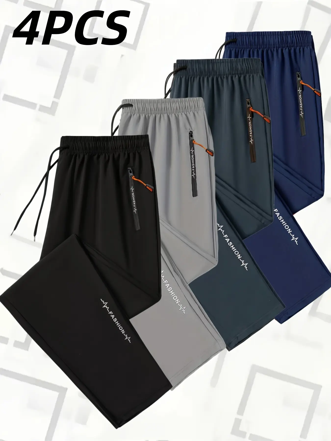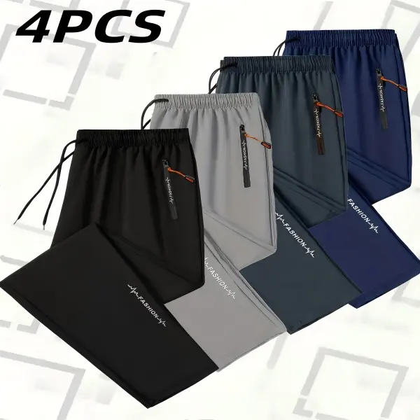 4-Pack Men’s & Women’s Cool Casual Sports Pants – Straight-Leg Long Pants with Zipper Pockets, Elastic Waist, Quick-Dry, Breathable Fabric, Suitable for All Seasons