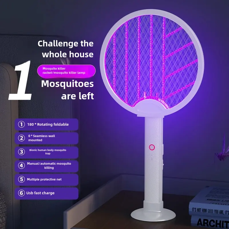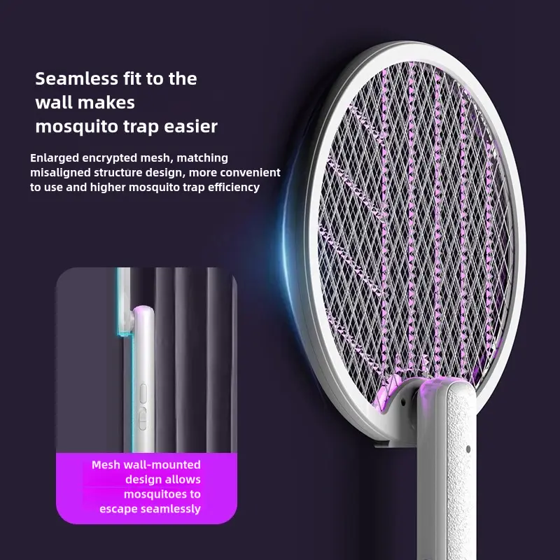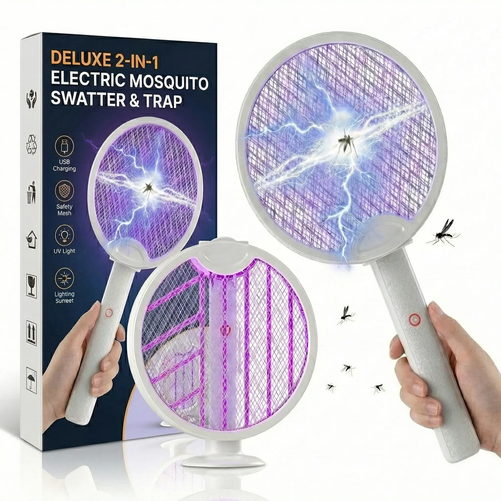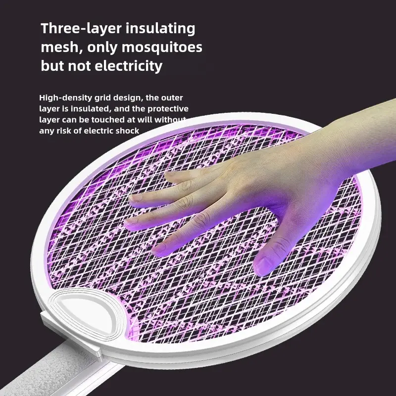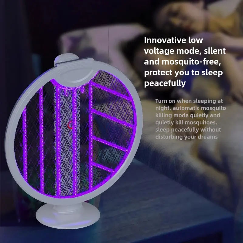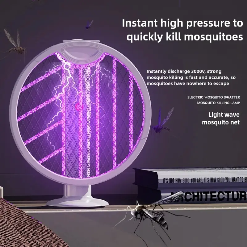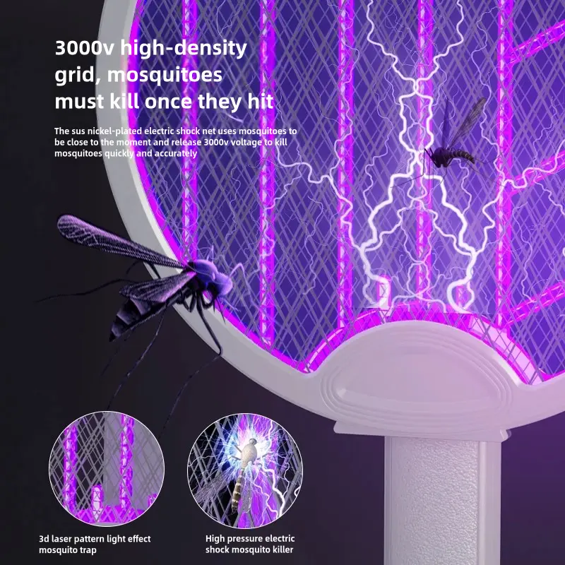 Foldable Electric Fly Swatter & 2-in-1 Bug Zapper Racket, 3000V High Voltage Mosquito Killer with UV Light, USB Rechargeable Handheld Insect Zapper with Base for Gnat, Wasp, Fruit Fly, Indoor Outdoor Camping Essentials