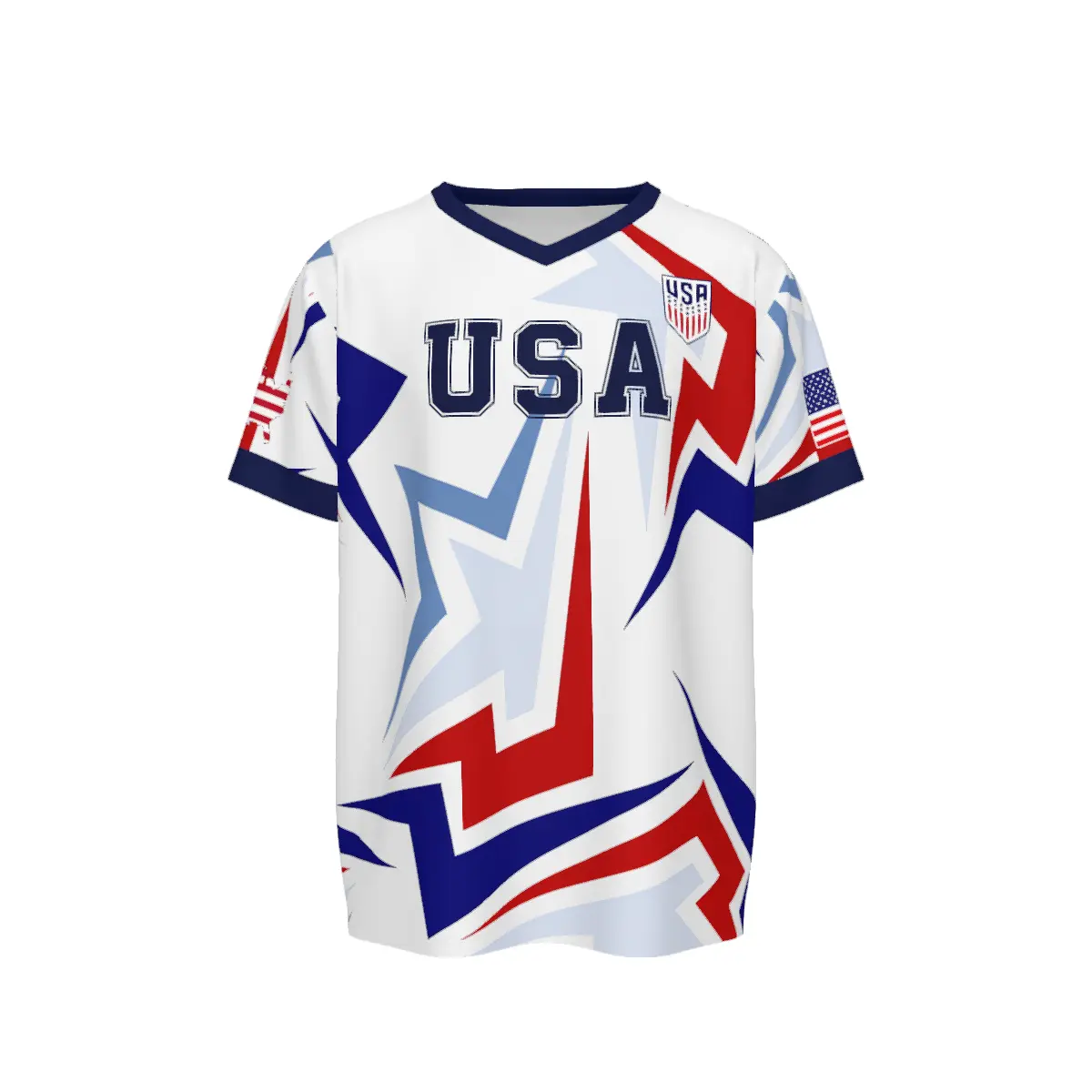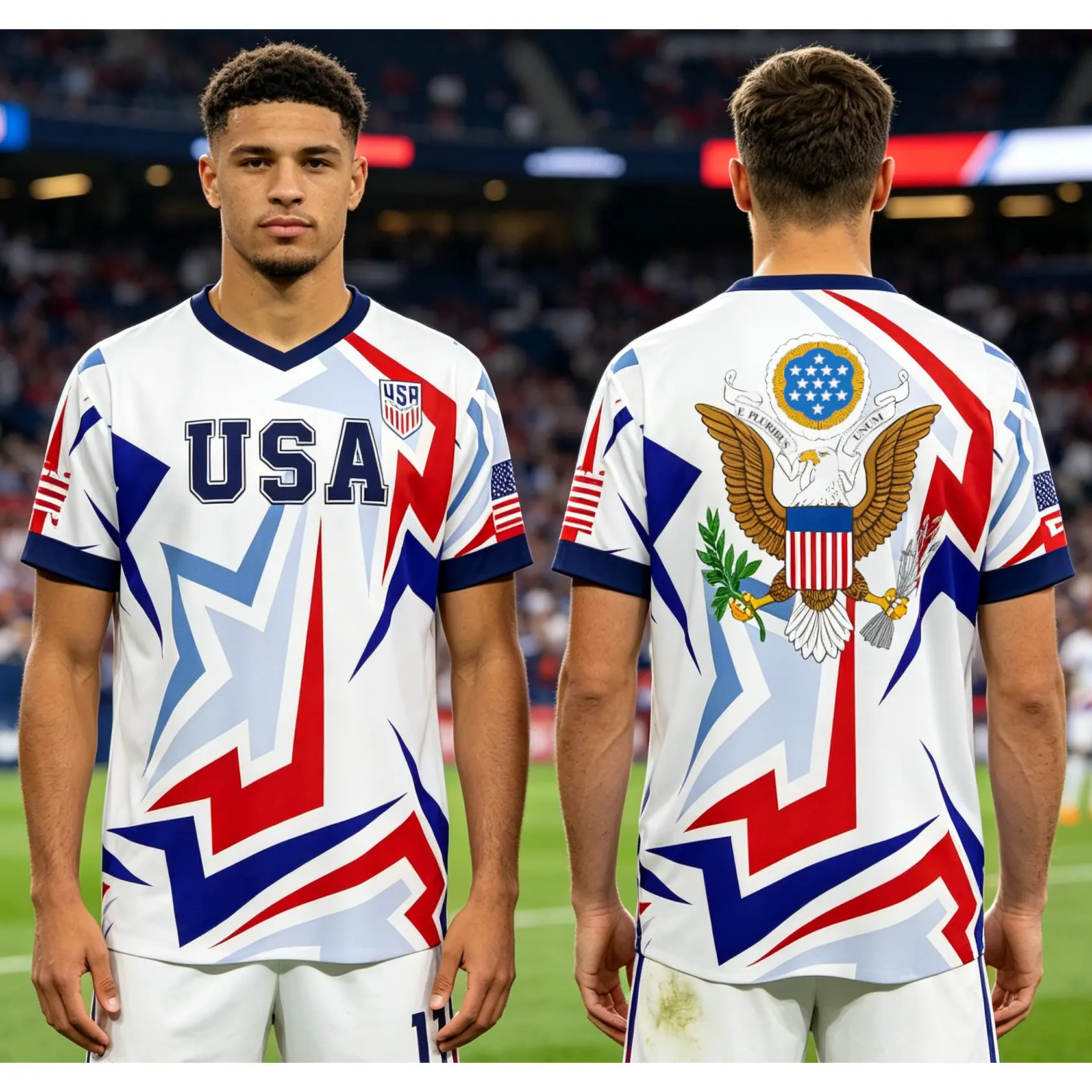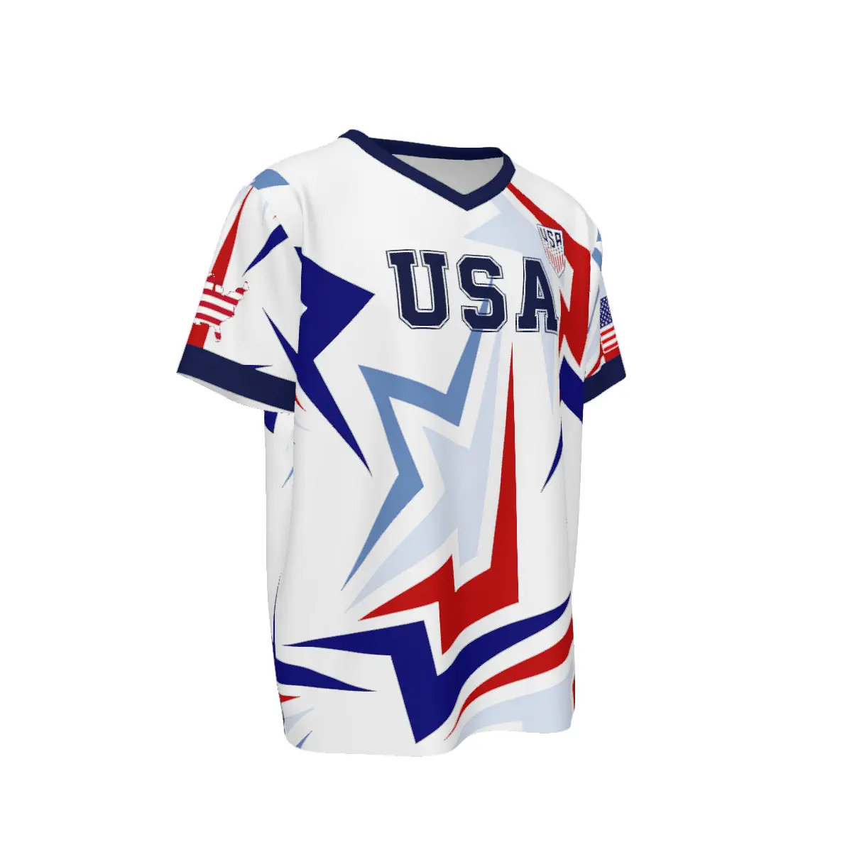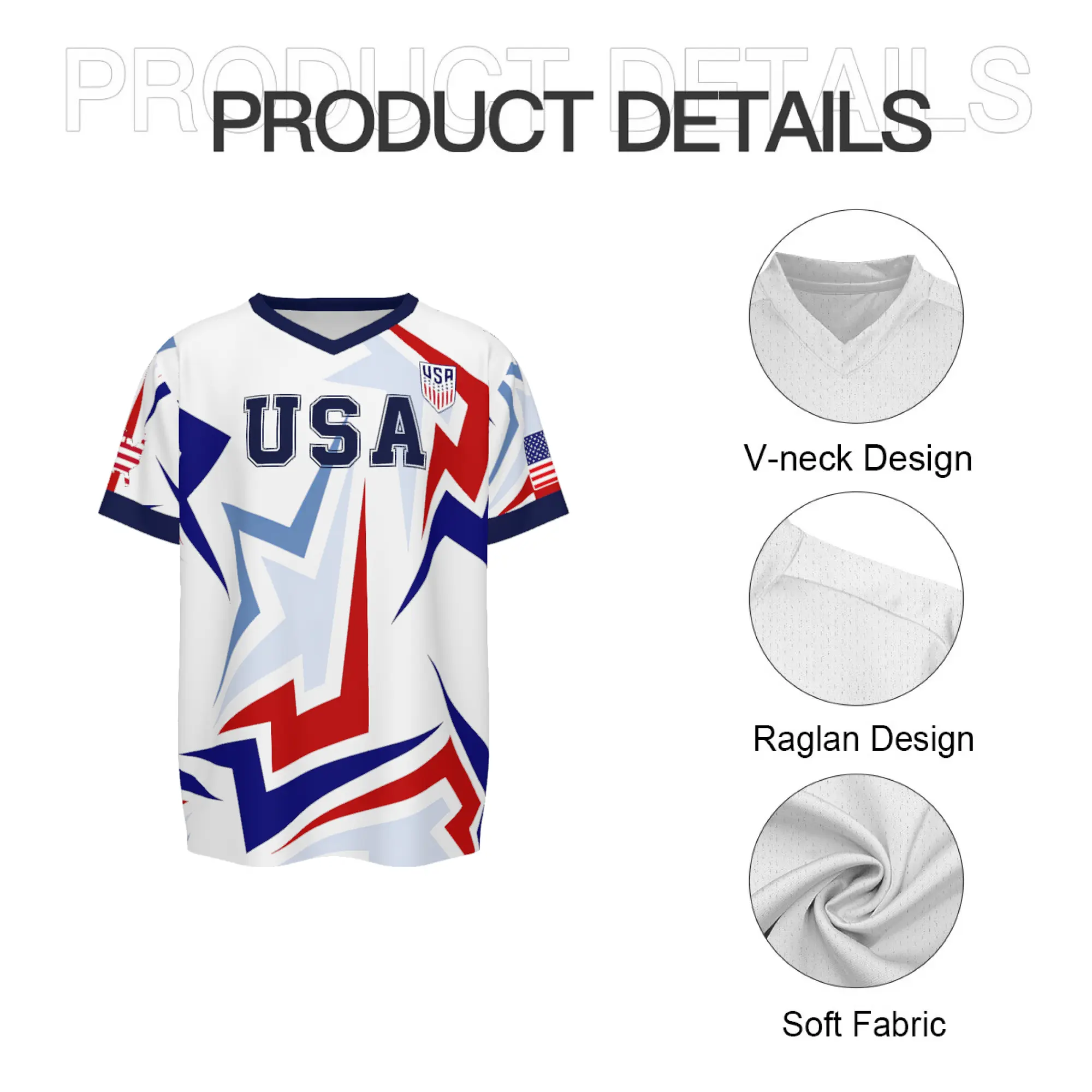 2026 V-neck USA soccer jersey, World Cup US national team fan style. Great gift for soccer lovers and players, ideal men’s America soccer wear.