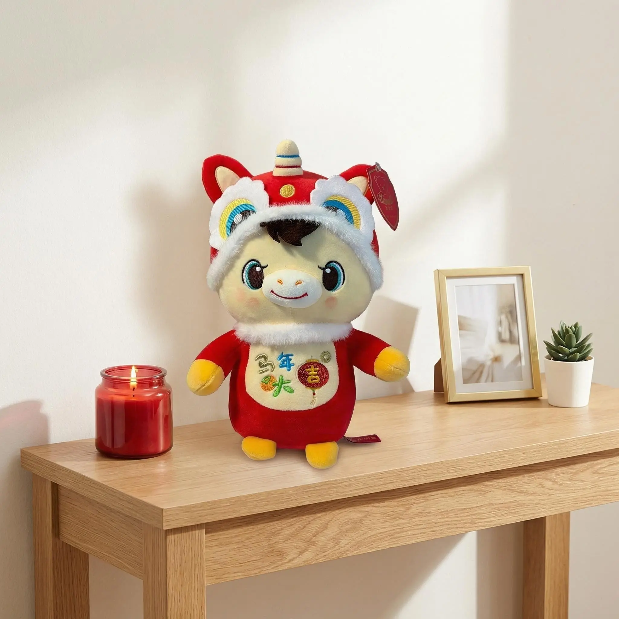 This 26cm Lucky Horse Lion Dance Plush Toy is made of premium short plush and high-elastic PP cotton, featuring exquisite embroidery and unique Chinese Lion Dance & Year of the Horse elements. It’s super soft, skin-friendly, and not easy to deform for long-lasting use, perfect as a desktop ornament for office/study/bedroom and a stunning home decor piece for the living room. Ideal for enhancing the festive atmosphere of weddings, housewarmings, birthday parties, and holiday gatherings, it also serves as a meaningful and cute gift for birthdays, housewarmings, weddings, Christmas, and Thanksgiving, bringing warm wishes to family, friends, and kids. With a 26cm moderate size, it’s easy to place and store, and the classic red and gold color scheme is full of auspicious meaning, bringing good luck and joy to daily life.