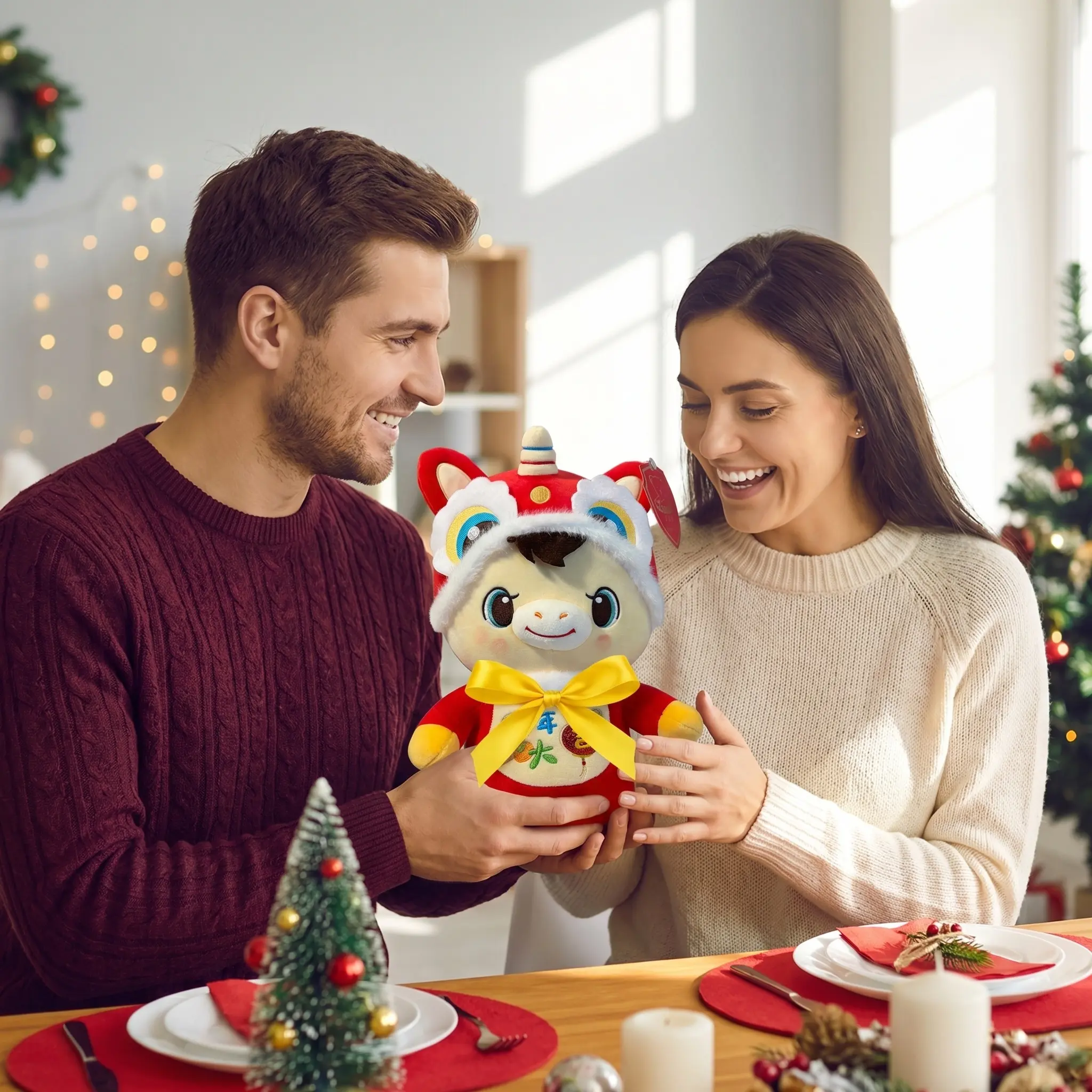 Lucky Horse Lion Dance Plush Toy, Perfect for Birthday/Housewarming/Wedding Gifts, Cute Stuffed Animal for Daily Home Decor, Desktop Ornament, Holiday Festival Decoration, Ideal Present for Family & Friends, Kids Room Decor