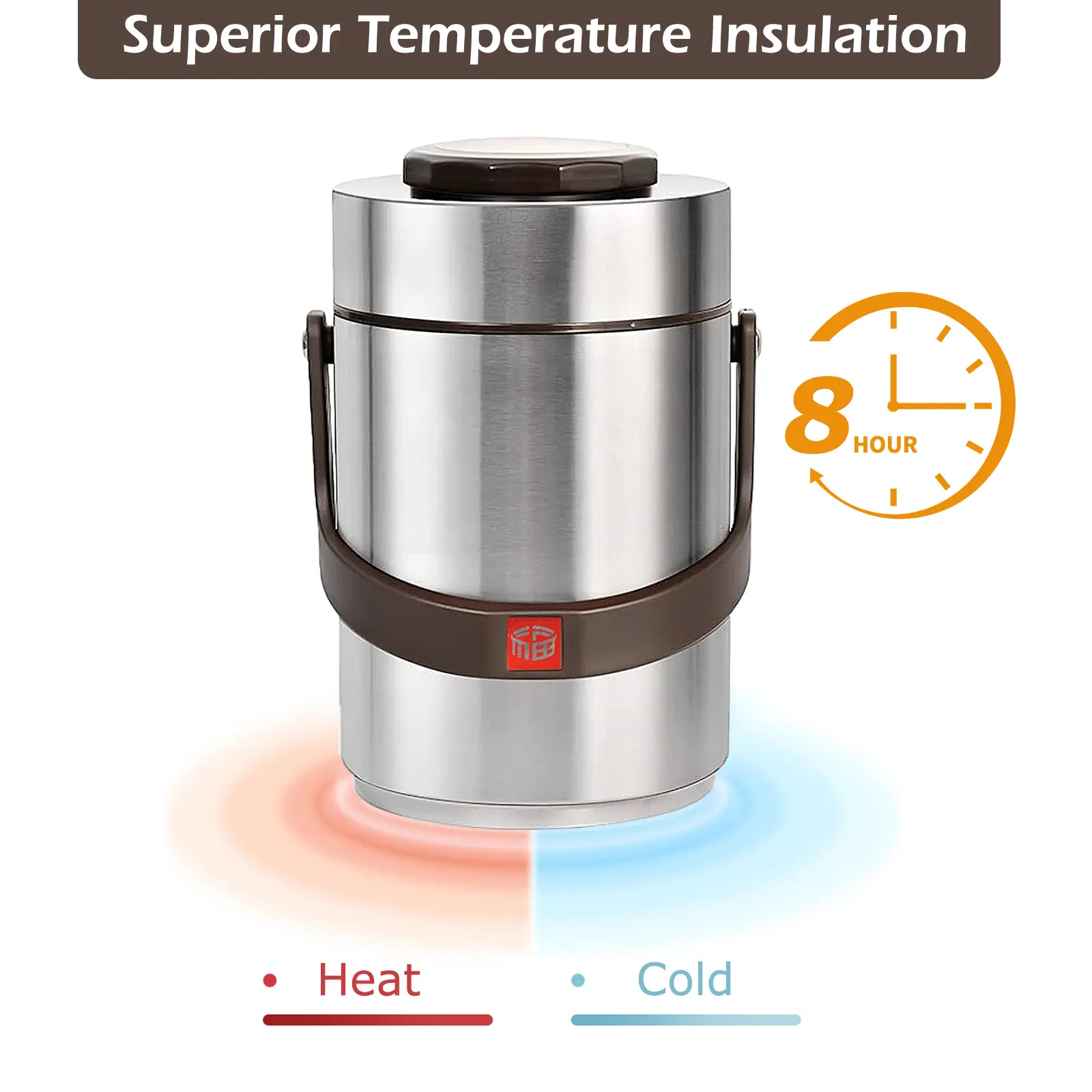 Double wall thermal insulation technology keeps hot and cold for up to 8 hours.No more cold lunch.No microwave or fridge necessary.