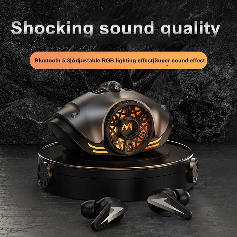 ·Design: The earbuds feature a futuristic "Alien Mech" look with dynamic RGB lighting effects that pulse to the rhythm of the audio. They’re ergonomically designed with a 45° in-ear fit for a comfortable, secure, and "weightless" experience, perfect for long gaming or music sessions.