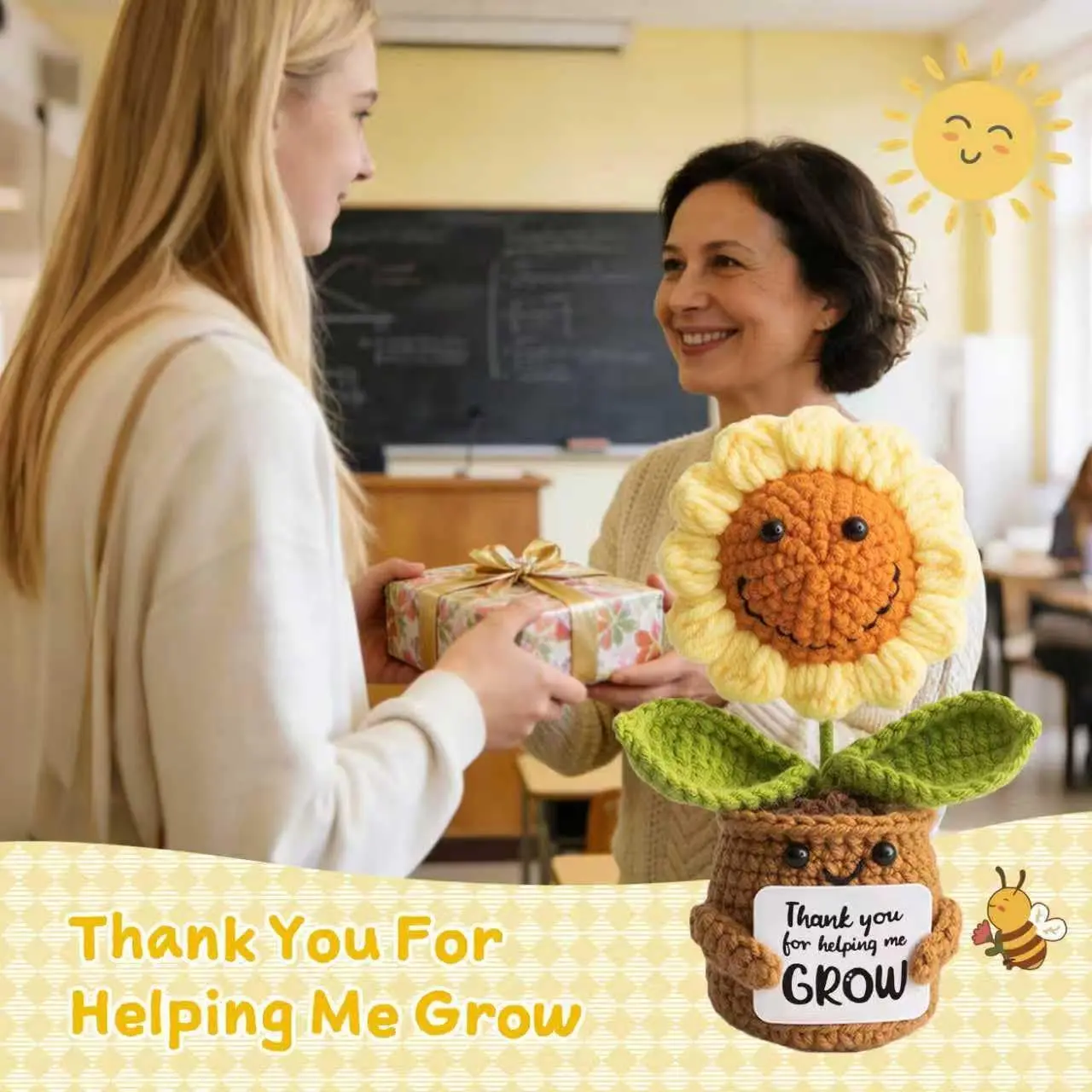 Teacher Appreciation Gifts for Women - Thank You Sunflower Crochet Flower Teacher’s Day Retirement Graduation Gift for Teacher Boss Coworker Lady Supervisor Emotional Inspirational Support
