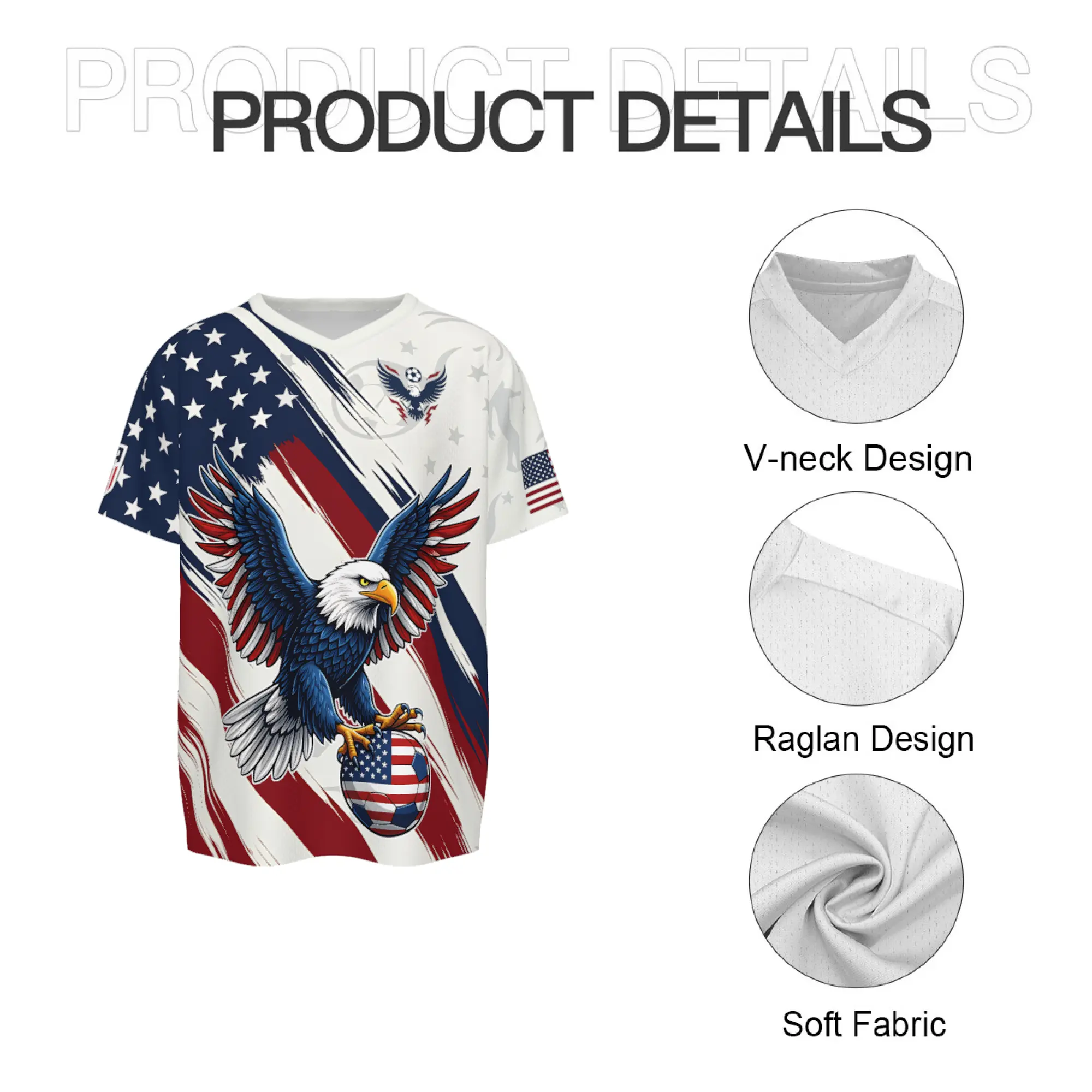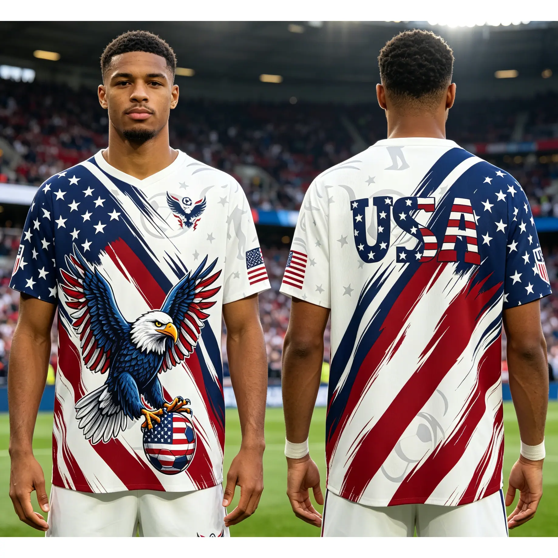 2026 USA Soccer Jersey, V-neck quick-drying casual design for players and fans. Premium men’s America jersey, perfect World Cup USA team fan gift.