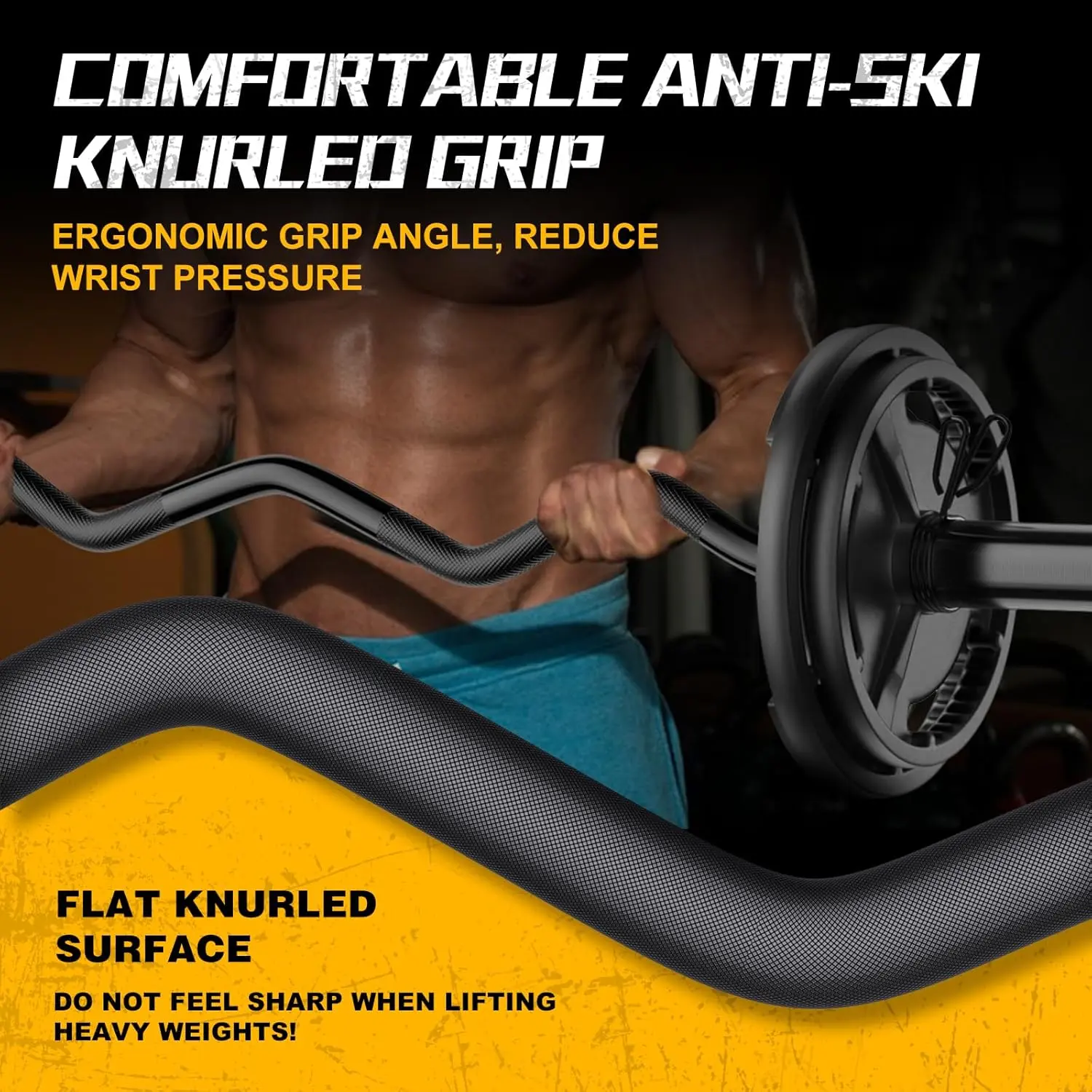 ANTI-SLIP & COMFORT: The EZ Bar's knurling provides grip, and the knurled surface is flat and not , so you don't have to worry about your hands being punctured when lifting heavy weights.