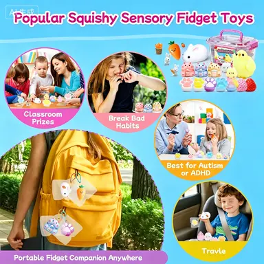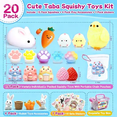 20Pcs Squishy Toys Pack-Easter Squishy Sensory Fidgets Toys Party Favors for Kids 4-8 8-12 -Kawaii Squishies Squeeze Toys for Girls-4 5 6 7 8 9 10 11 12 Year Old Girl Birthday Gifts