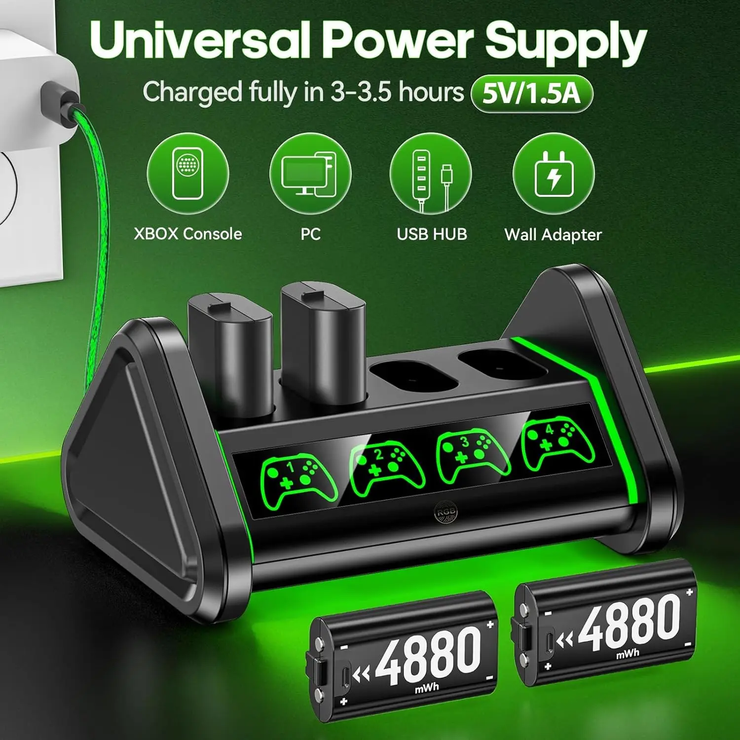 Power up your Xbox controllers with 4 x 4880mWh rechargeable batteries, compatible with Xbox Series X|S, Xbox One, Xbox One S, Xbox One X, and Xbox Elite controllers.