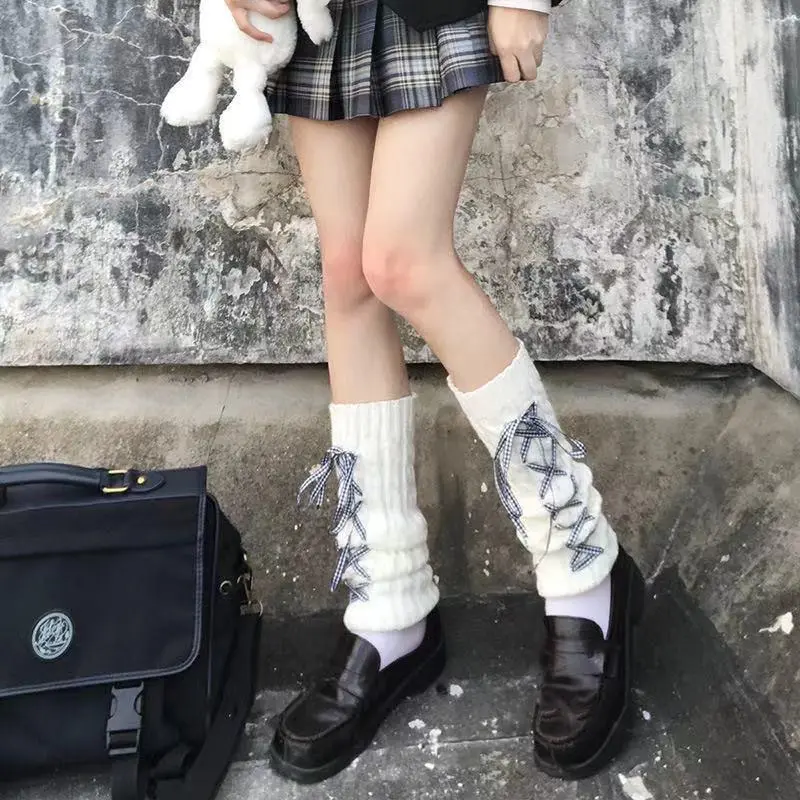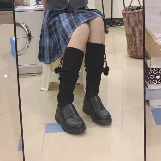 KOSAHIKI Japanese Lolita Sweet Girl Leg Warmer Knit Socks Wool Ball Knitted Foot Cover Cosplay Women Autumn Winter Punk Sock