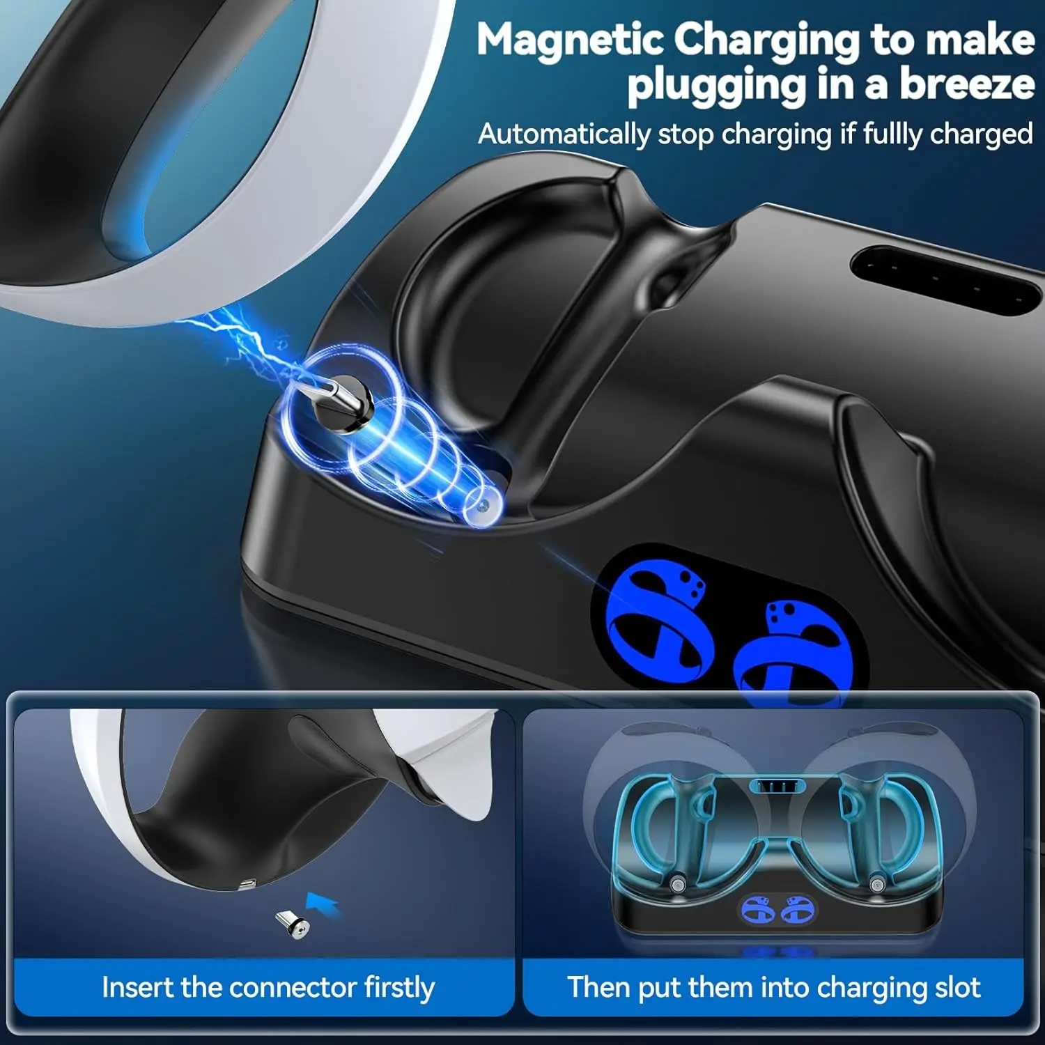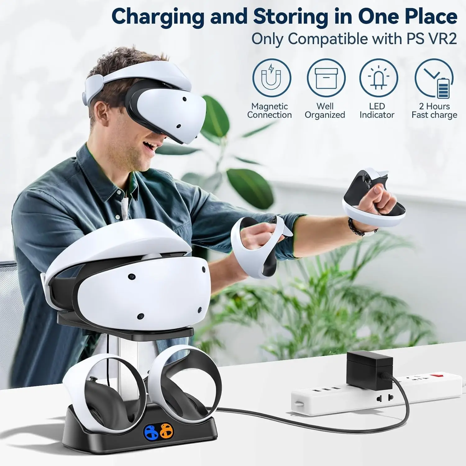 SUNDAY MIRTH Ps5 Vr2 Controller Charging Station with VR Headset Stand, Includes LED Indicator and 2 Magnetic Clips, Essential VR Accessories for Ps Vr2