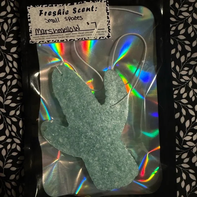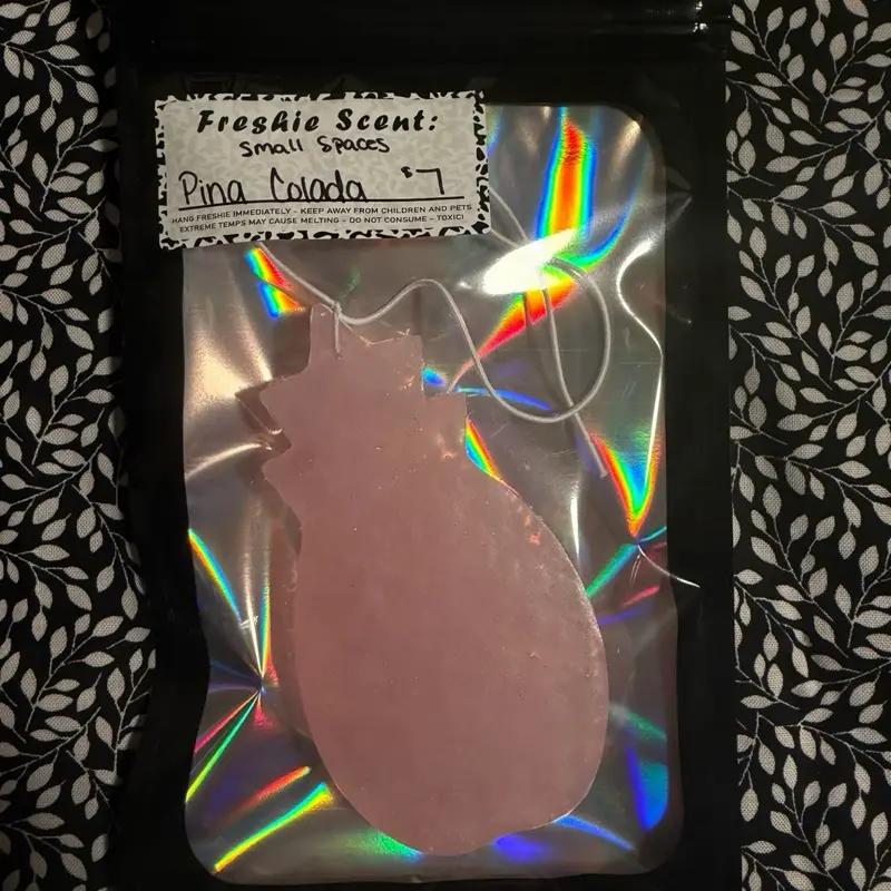 Place it in your car, office, or home to enjoy a pleasant aroma. The freshener is designed to fit seamlessly into small spaces, enhancing the environment without clutter. It's a simple yet effective way to keep your surroundings smelling fresh.