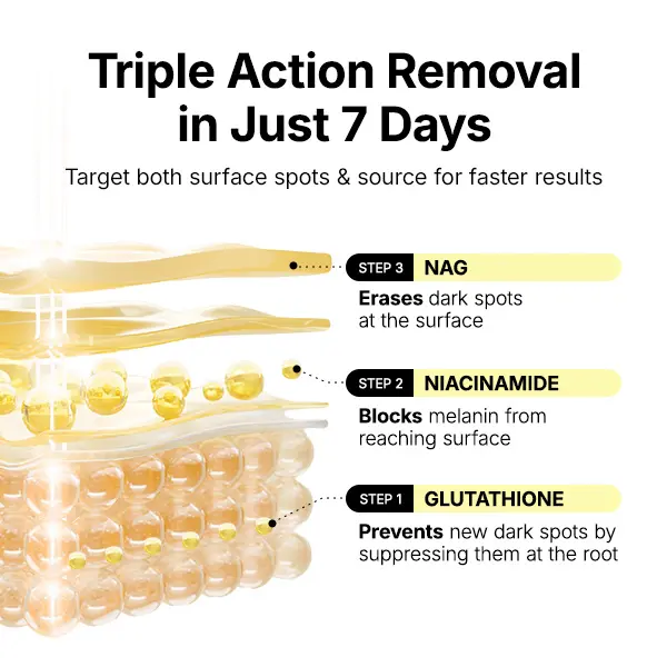 A targeted brightening patch inspired by K‑beauty glutathione care, designed to visibly improve dark spots and uneven tone in just 7 days.It uses a triple‑action approach to address both surface discoloration and underlying pigmentation for long‑lasting effects.
