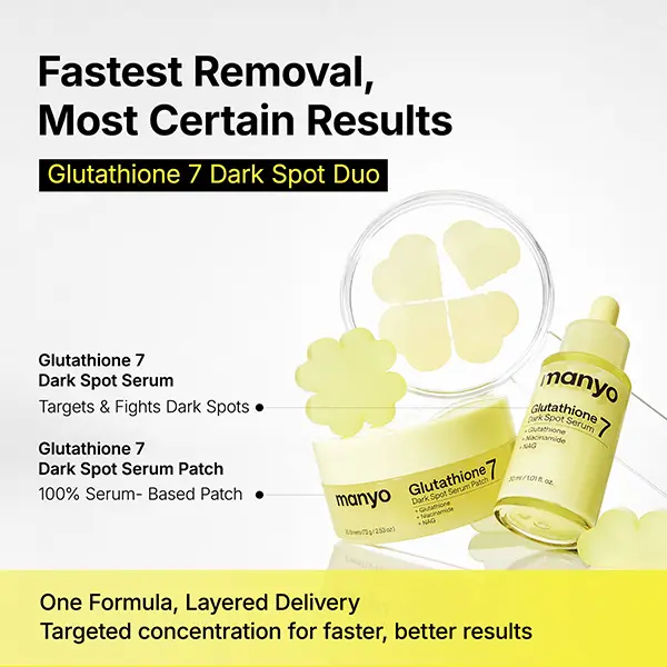 This complete brightening duo is inspired by popular K‑beauty brightening care. It combines an all‑over brightening serum and targeted dark spot patch, both powered by Glutathione to improve dark spots, dullness, and uneven skin tone in 7 days. Gentle, non‑comedogenic, and suitable for all skin types including sensitive skin.