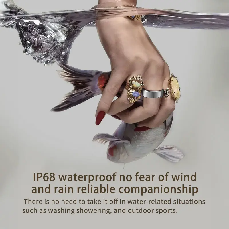 IP68 Water Resistance & Premium Materials Rated IP68 for water and dust protection, the ring is designed for all-day wear no need to remove it while washing hands, swimming, or showering. Constructed from epoxy resin and stainless steel, it weighs only 3.5g, conforming to finger contours for frictionless, all-day comfort.