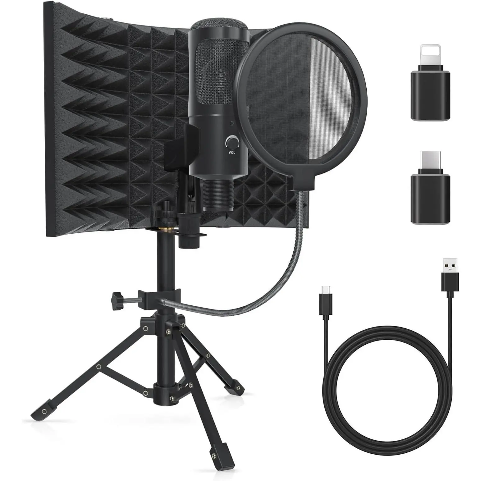 MUSIC STUDIO EQUIPMENT PACKAGE LIST: This studio music recording equipment kit includes 3-panel microphone studio shield*1, microphone for recording music*1, USB microphone *1, Type-C adapter*1, metal tripod stand*1, mic clip*1, microphone filter*1, instruction manual*1. If you encounter any problems before purchasing or during the use of this music equipment, you can contact at any time, we will serve you wholeheartedly.