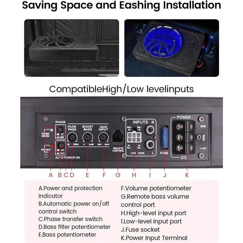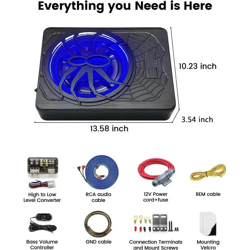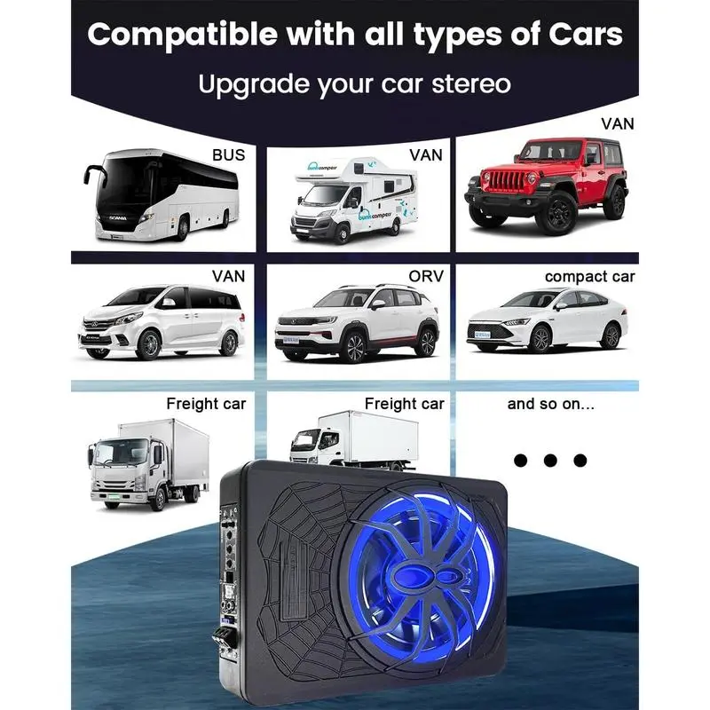 Elevate your car audio experience with the 2025 Upgraded 10 Inch 1200W Slim Car Subwoofer.This subwoofer features an integrated amplifier for powerful bass.It's designed for under-seat installation, ensuring a sleek look.The subwoofer boasts outstanding heat dissipation, making it reliable for extended use.Perfect for car enthusiasts seeking a robust sound system.