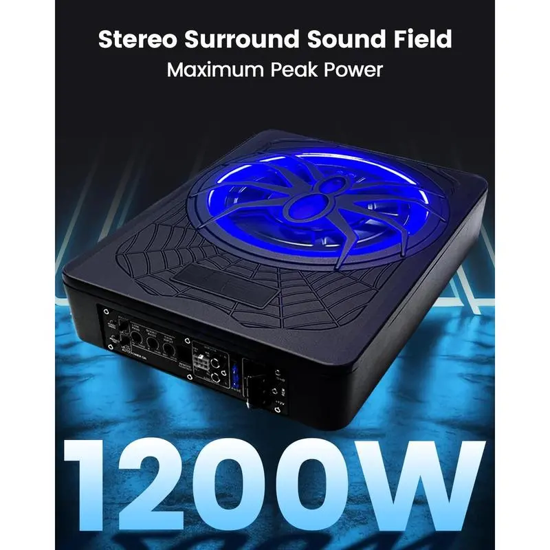 SUNDAY MIRTH 2025 Upgraded 10 Inch 1200W Slim Car Subwoofer with LED LightsAudio Sub Built in Amplifier Outstanding Heat Dissipation, Powerful Bass for Passion Dr1200W 10inch Slim Under Seat Powered Car Subwoofer