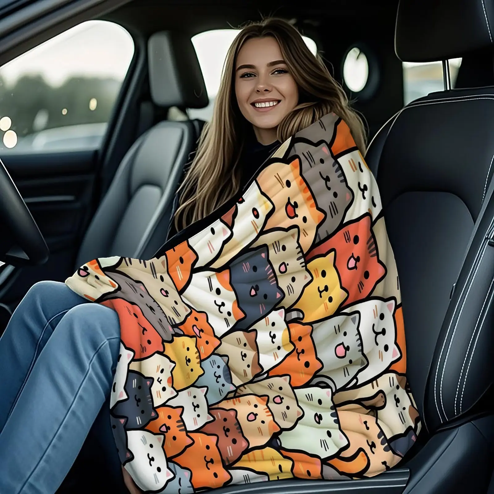 Cartoon Cat Print Blanket Soft and Cute Flannel Blanket with Cat Print The Perfect Gift for Animal Lovers. Lightweight and Comfortable, Ideal for Bedrooms, Sofas, Living Rooms, and Outdoor Use