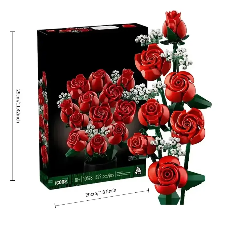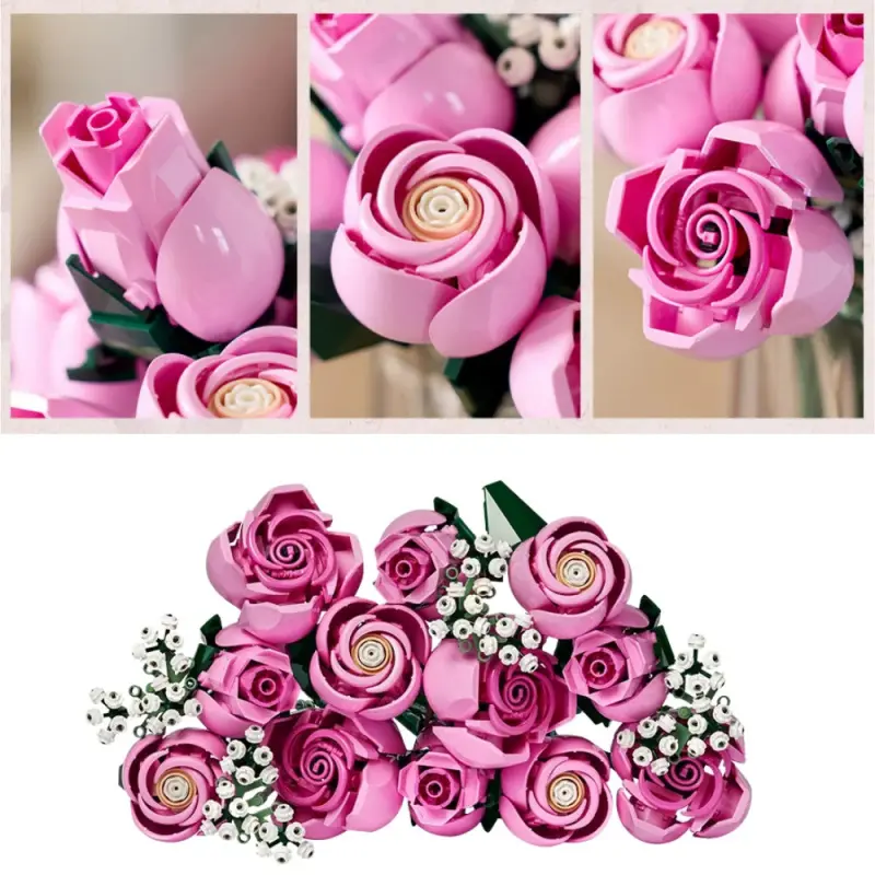 789pcs Pink Rose Bouquet Building Blocks Set, Red Rose, Christmas & Valentine's Day Gift for Girlfriend