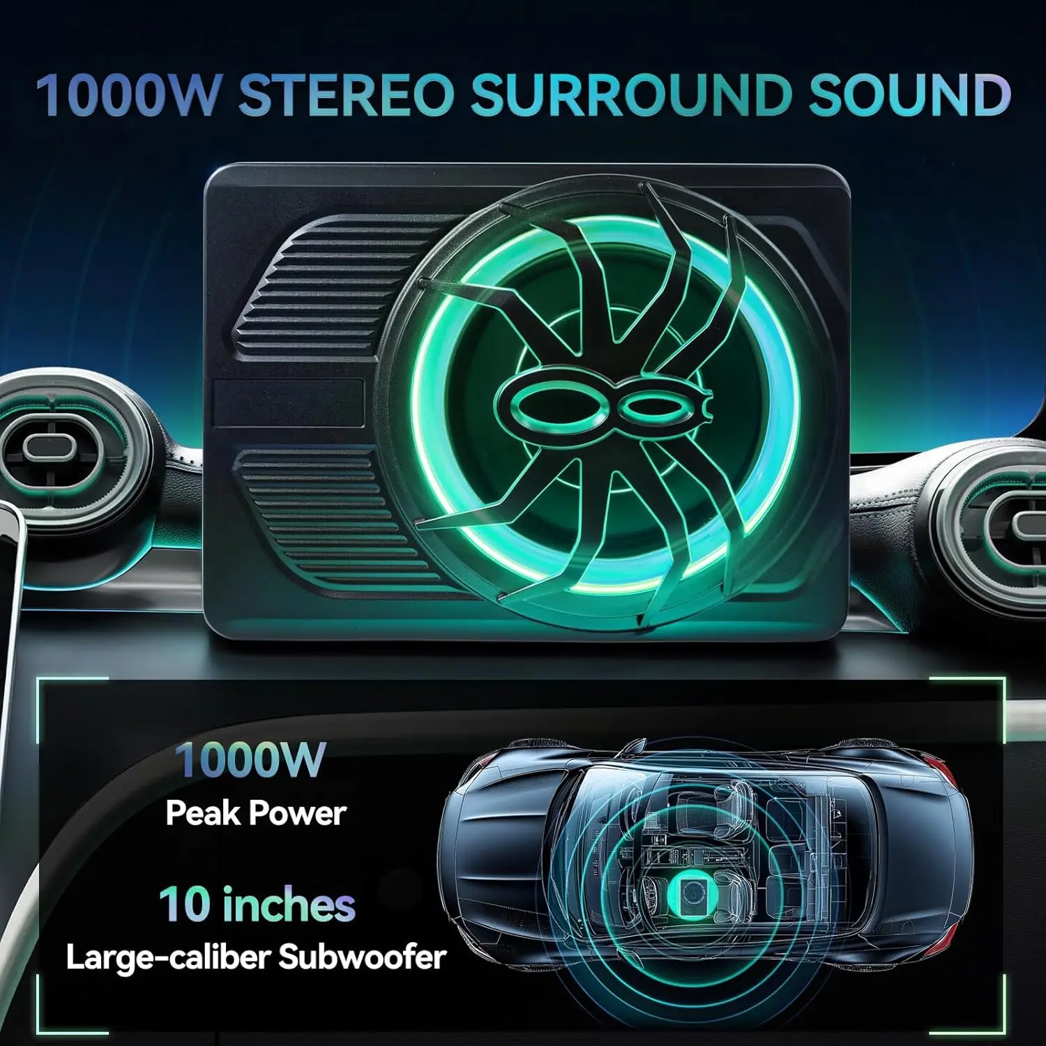 SUNDAY MIRTH Upgraded 10" 1200W Slim Under Seat PoweredCarSubwoofer1000WCar Subwooferwith APPControlandColour Light,10'' Slim UnderSeatPoweredCar Subwoofer w\/Built-in Amplifier & Hi\/Lo Input, Bass SpeakerSubwooferfor Car\/Truck\/SUV\/Jeep\/MPV homesound