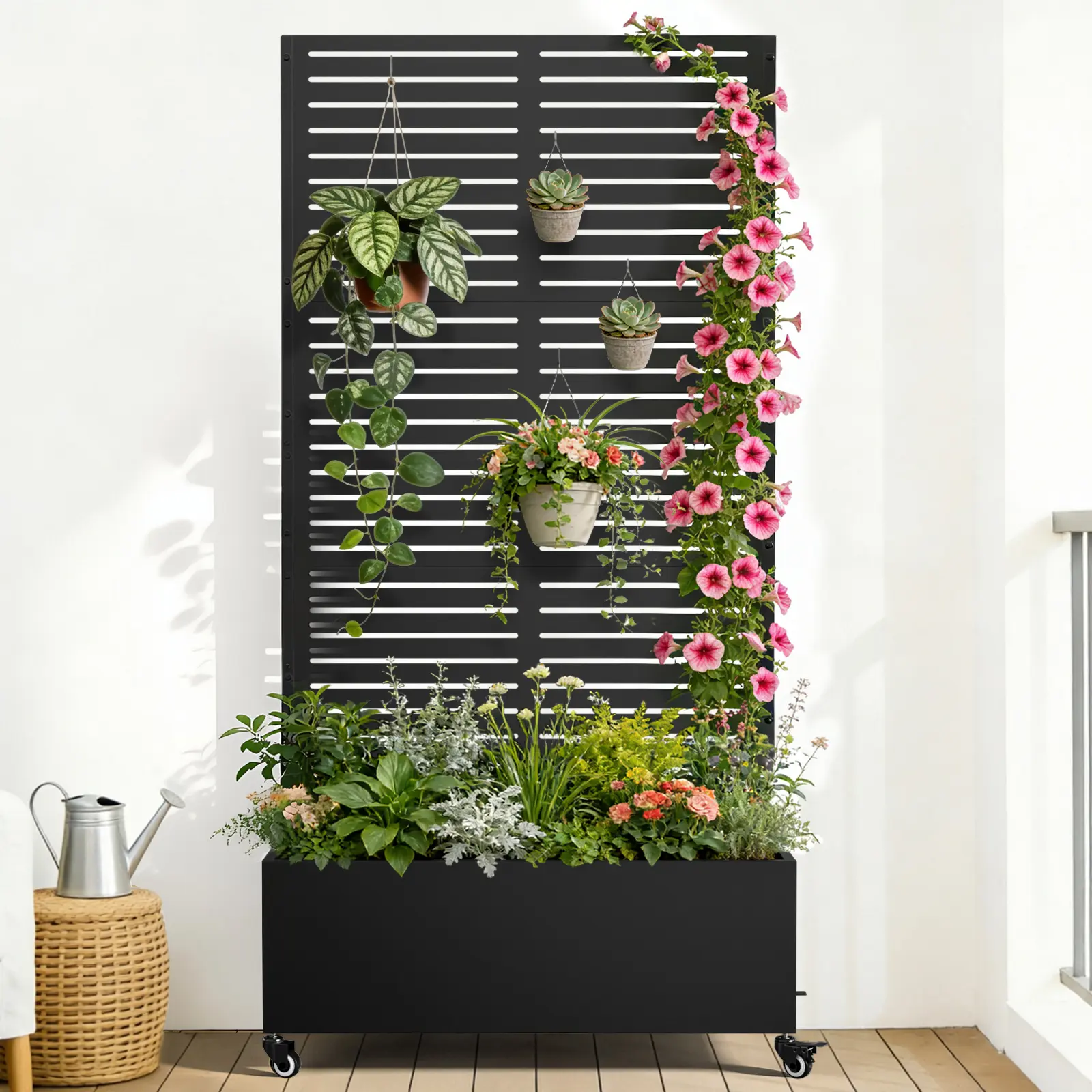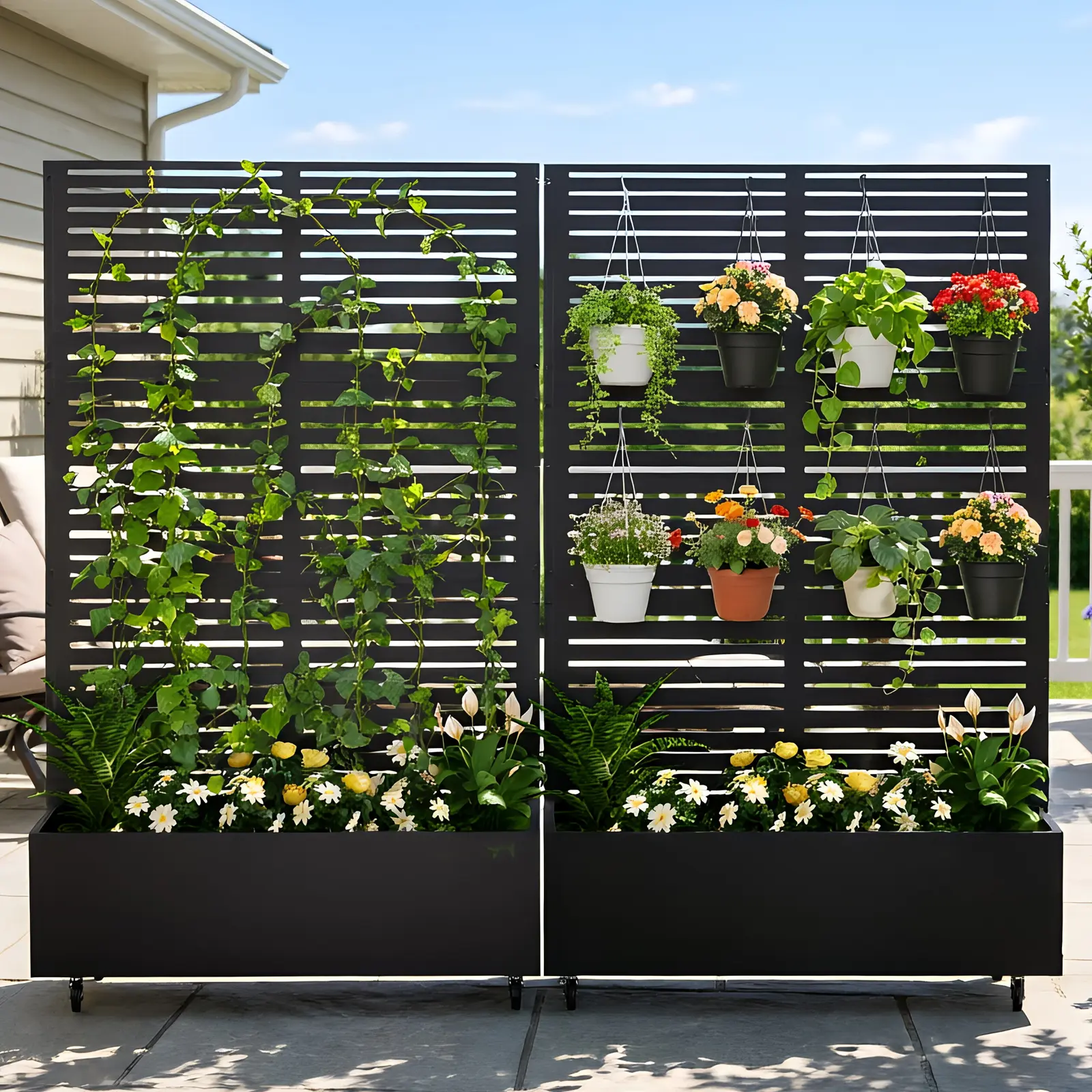 ·Versatile Design: This metal planter with an integrated trellis offers multiple uses, making it the perfect addition to any garden. Function as an elegant flower display or transform it into a practical outdoor privacy screen.