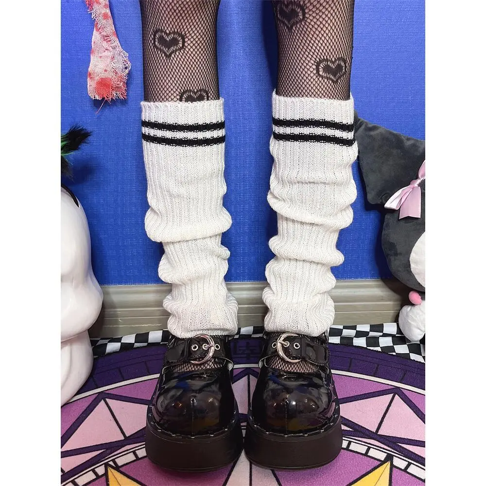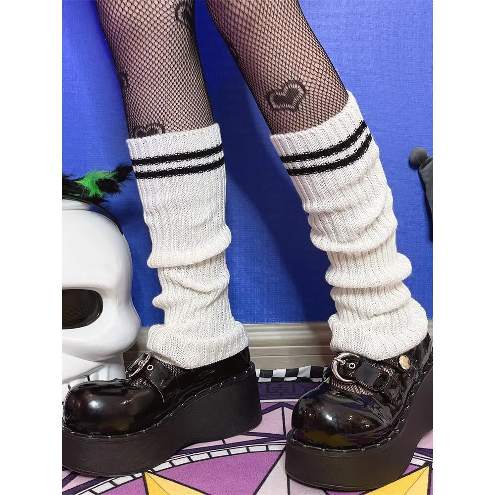 KOSAHIKI Lolita Socks Goth Striped Knit Girl Leg Warmers Women Japanese Harajuku Winter Boot Cuffs Legs Cover
