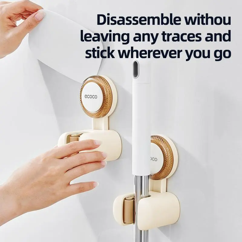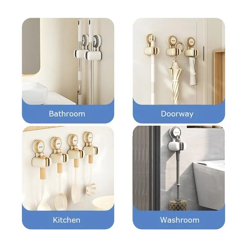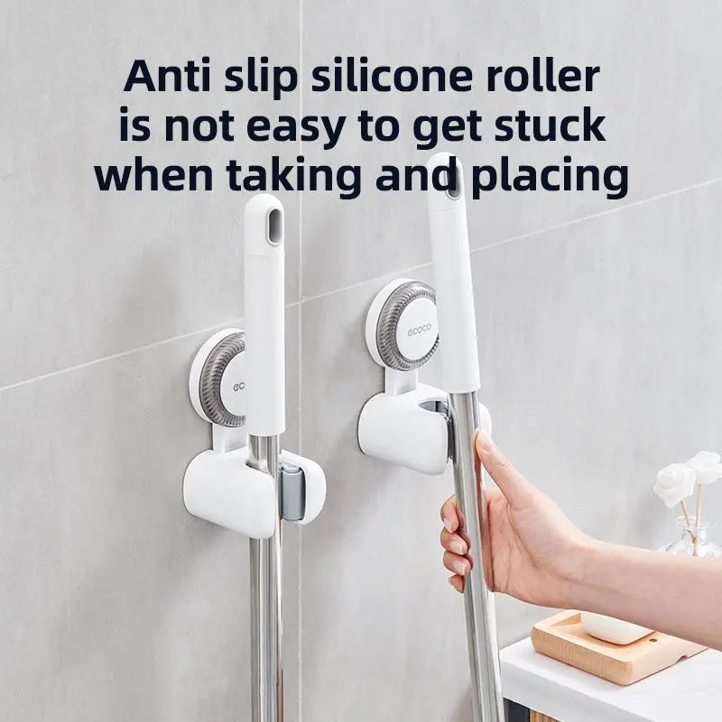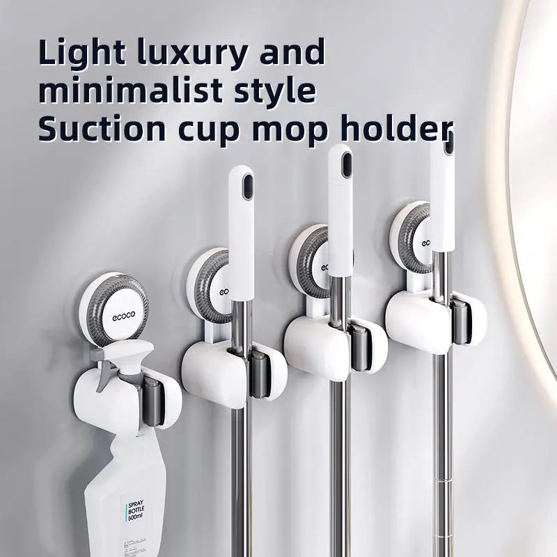 RENEMOS Suction Cup Mop Rack - Versatile Cleaning Tool Organizer for Utility Room & Shower - Non-Slip Grip - Waterproof & Reusable Wall Hanger - Secure Storage for Mop, Broom & Swiffer