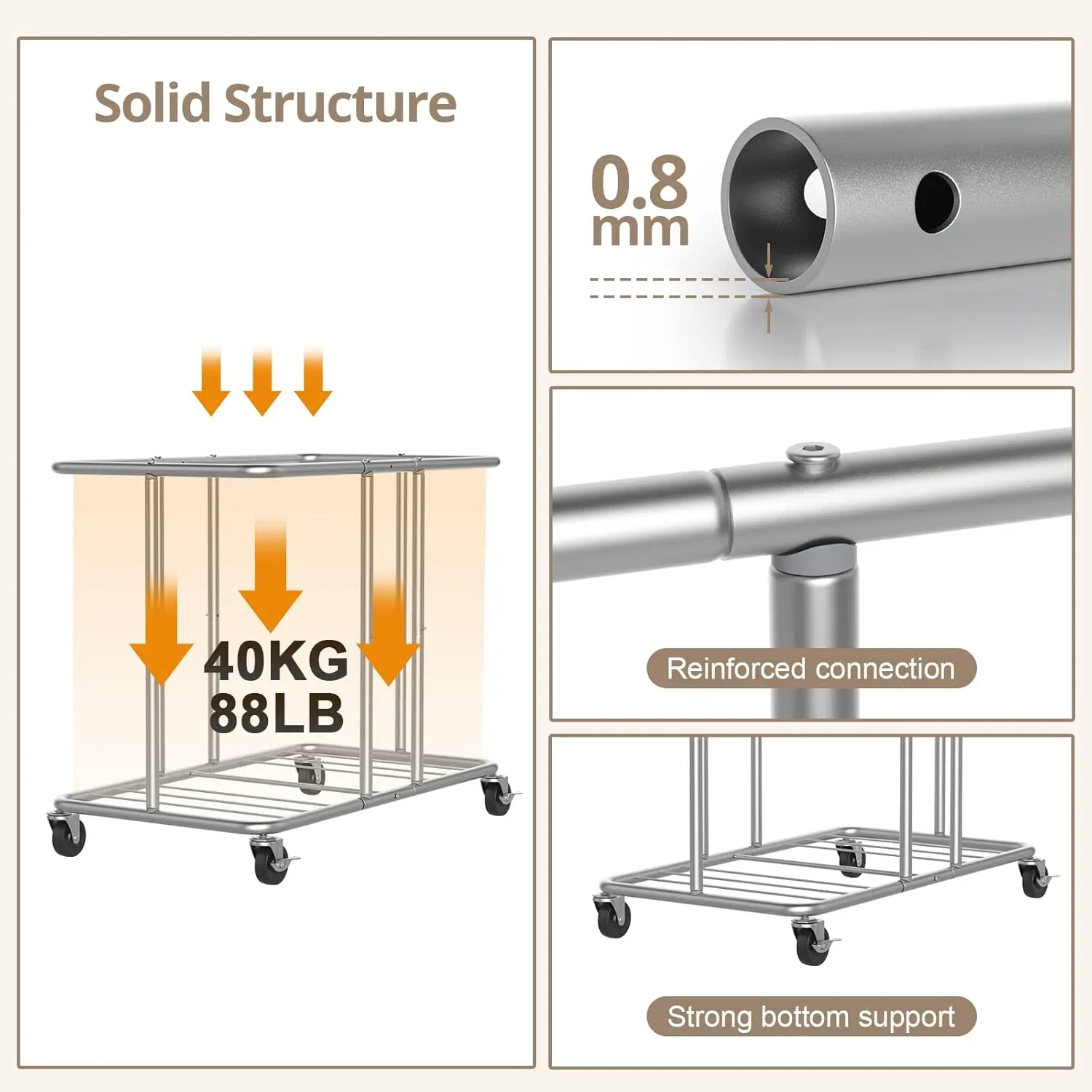 [Sturdy & Structure] made of a thickened metal poles, with a rust-resistant surface, this heavy-duty laundry hamper with wheels boasts a and structure that can support up to 88 lb.