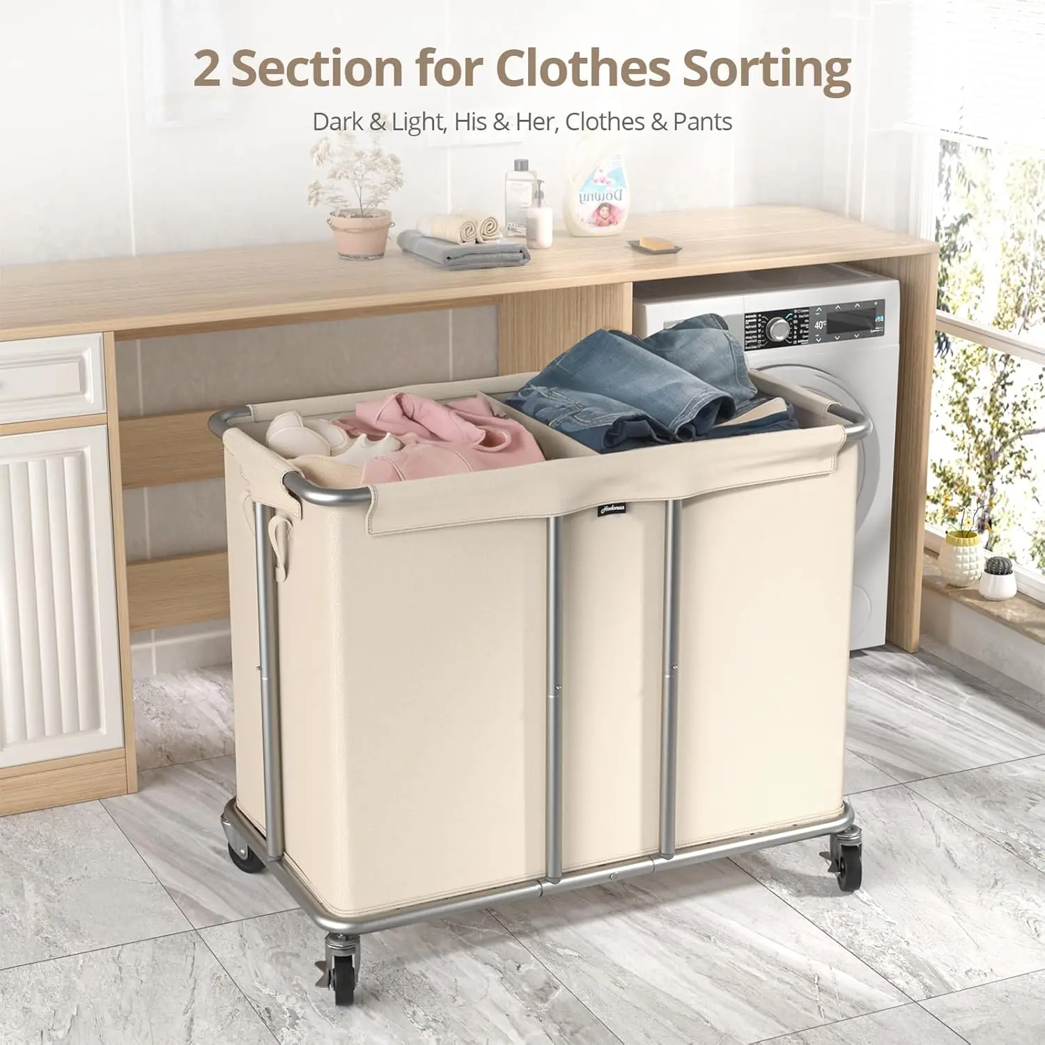 [2 Spacious Compartments] Measuring 31.5"L x 15.75"W x 30.71"H and featuring two 30.5-gallon (115L) compartments, this rolling laundry basket is designed to sort his/her dirty clothes, dark/light dirty clothes, or clothes/pants etc.