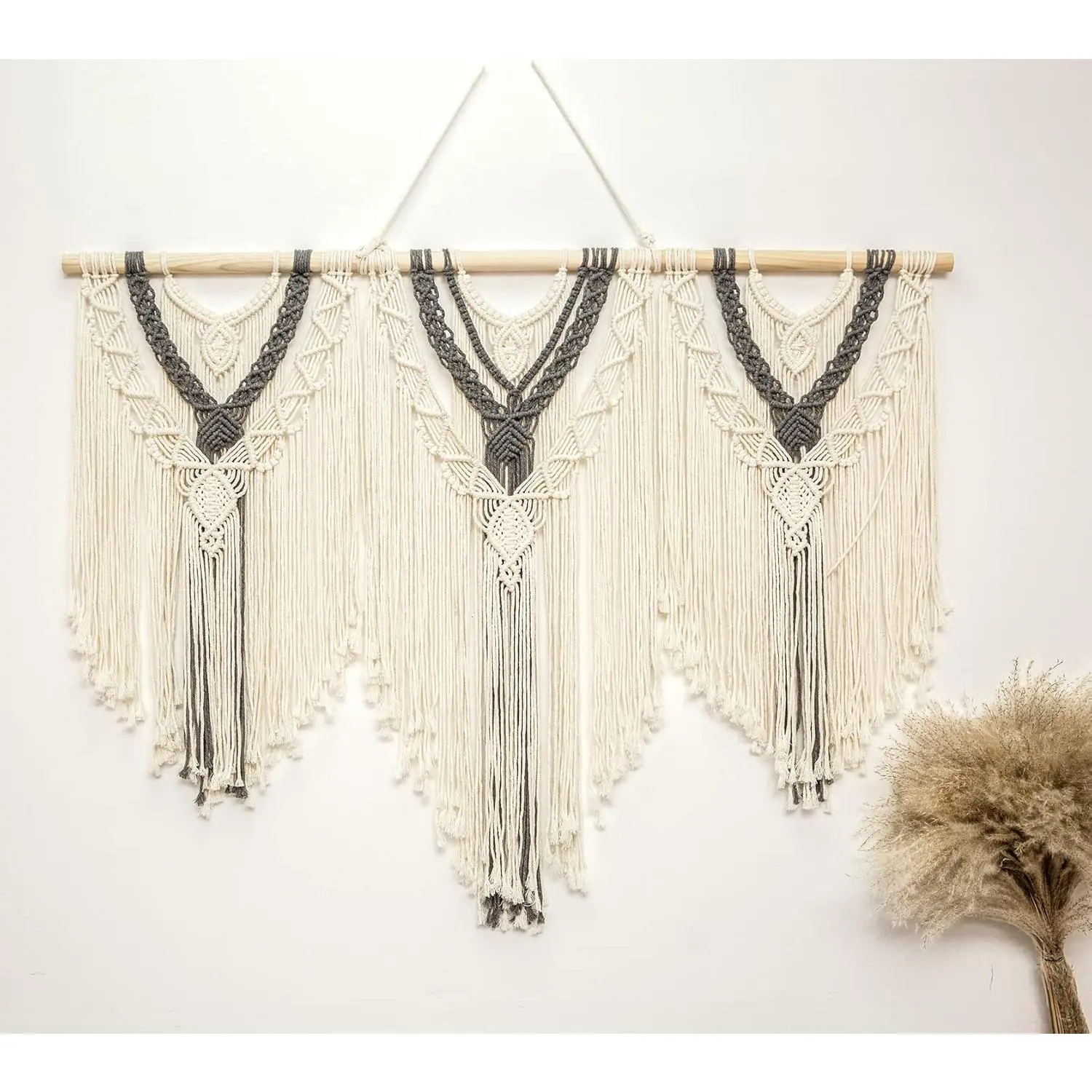 Easy to assemble: A tapestry of 43''x32'' inches and 3 count of spliced wooden Dowel,Three splicing wooden rod are included on the package, so it is easy to splice the three wooden rod screw together to become 1 large macrame .