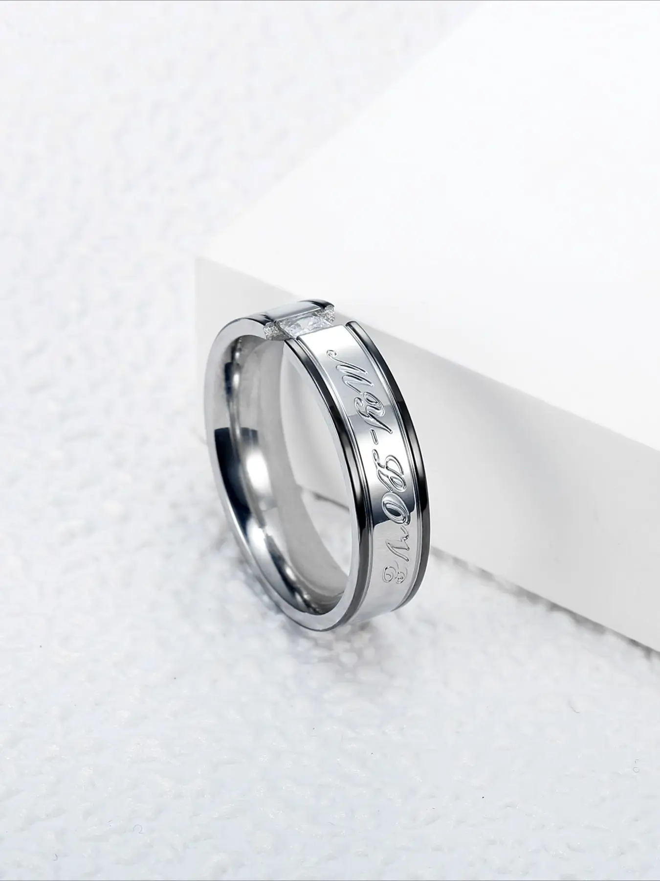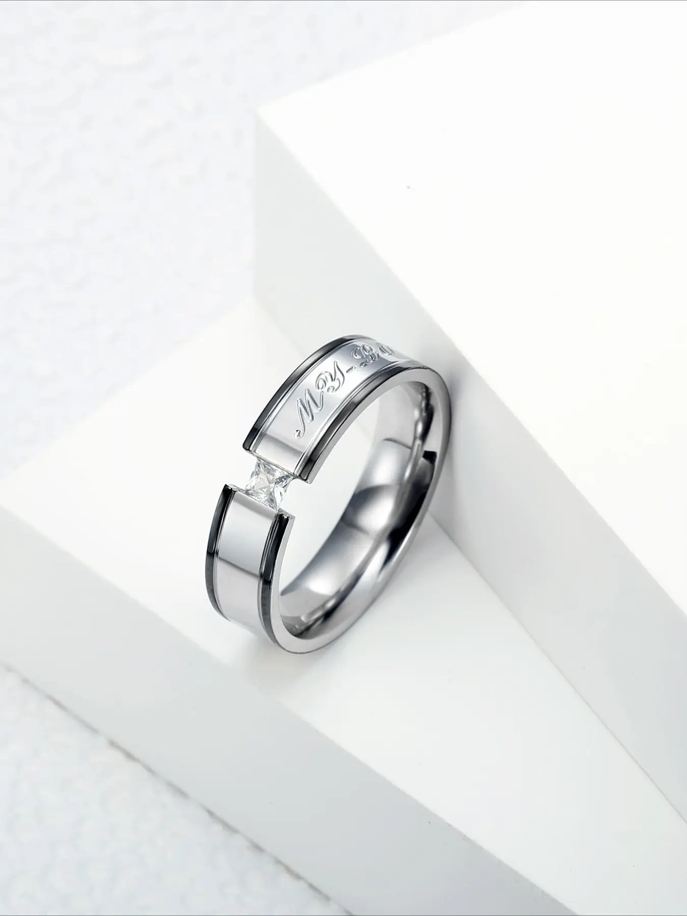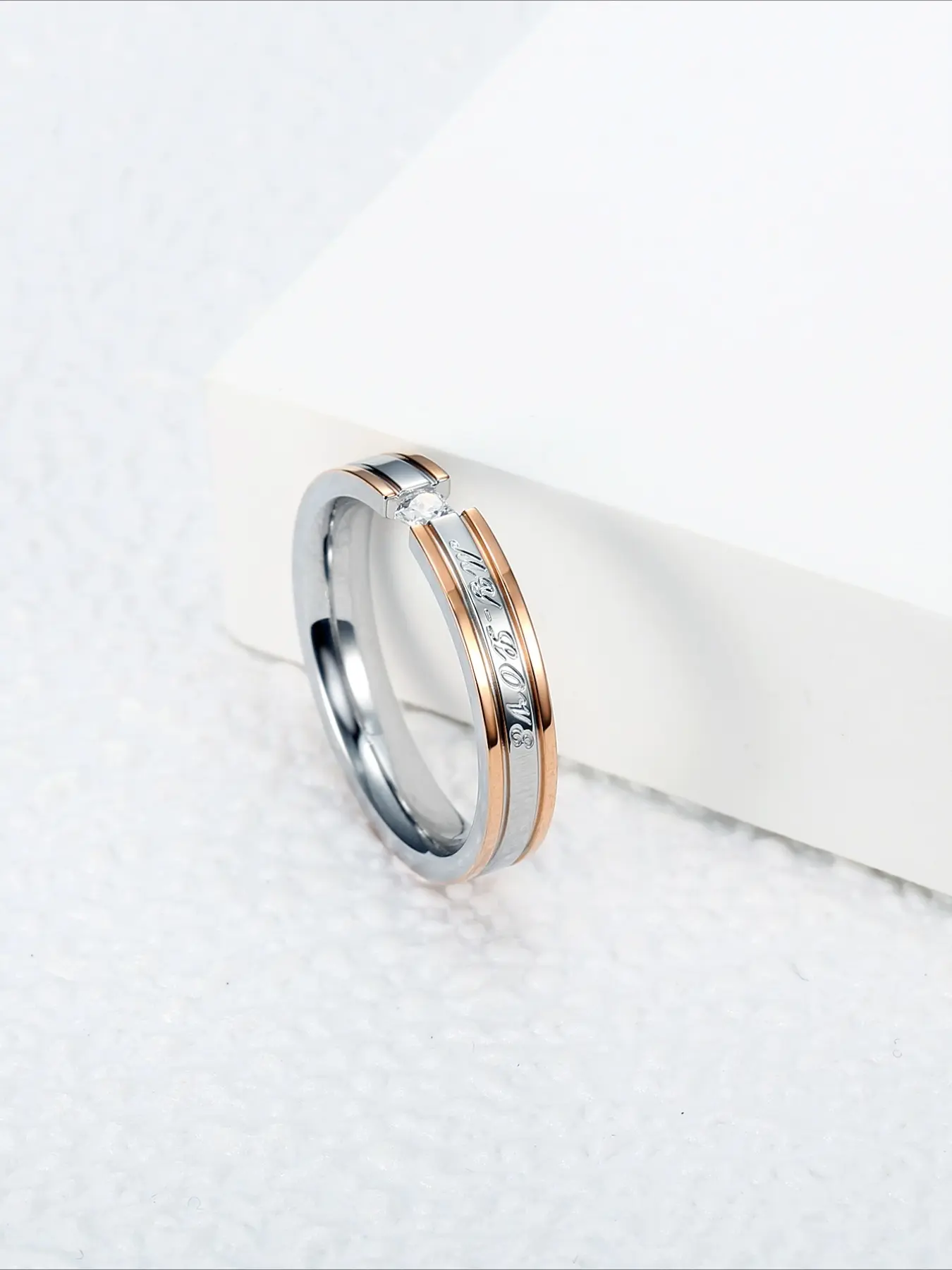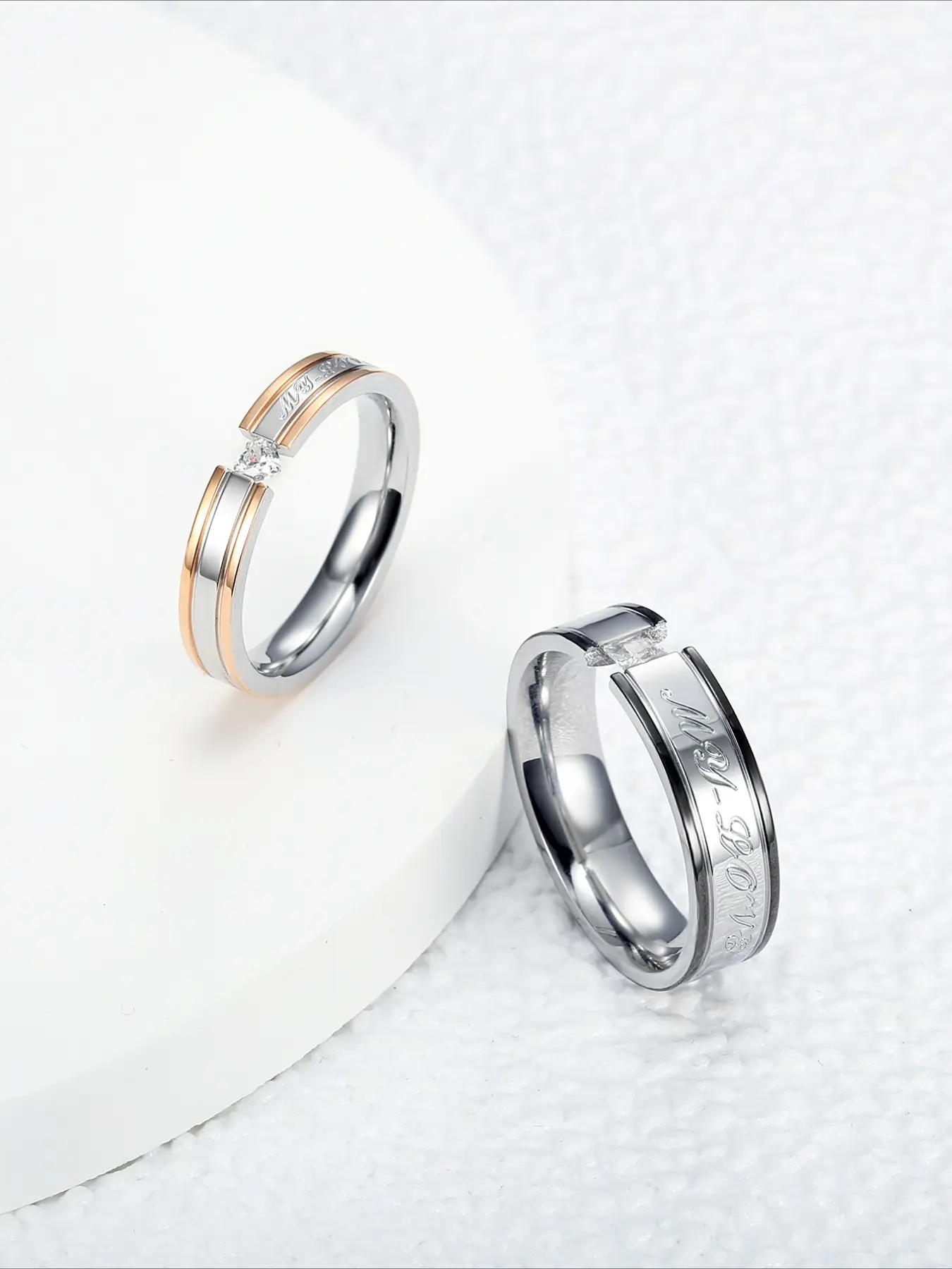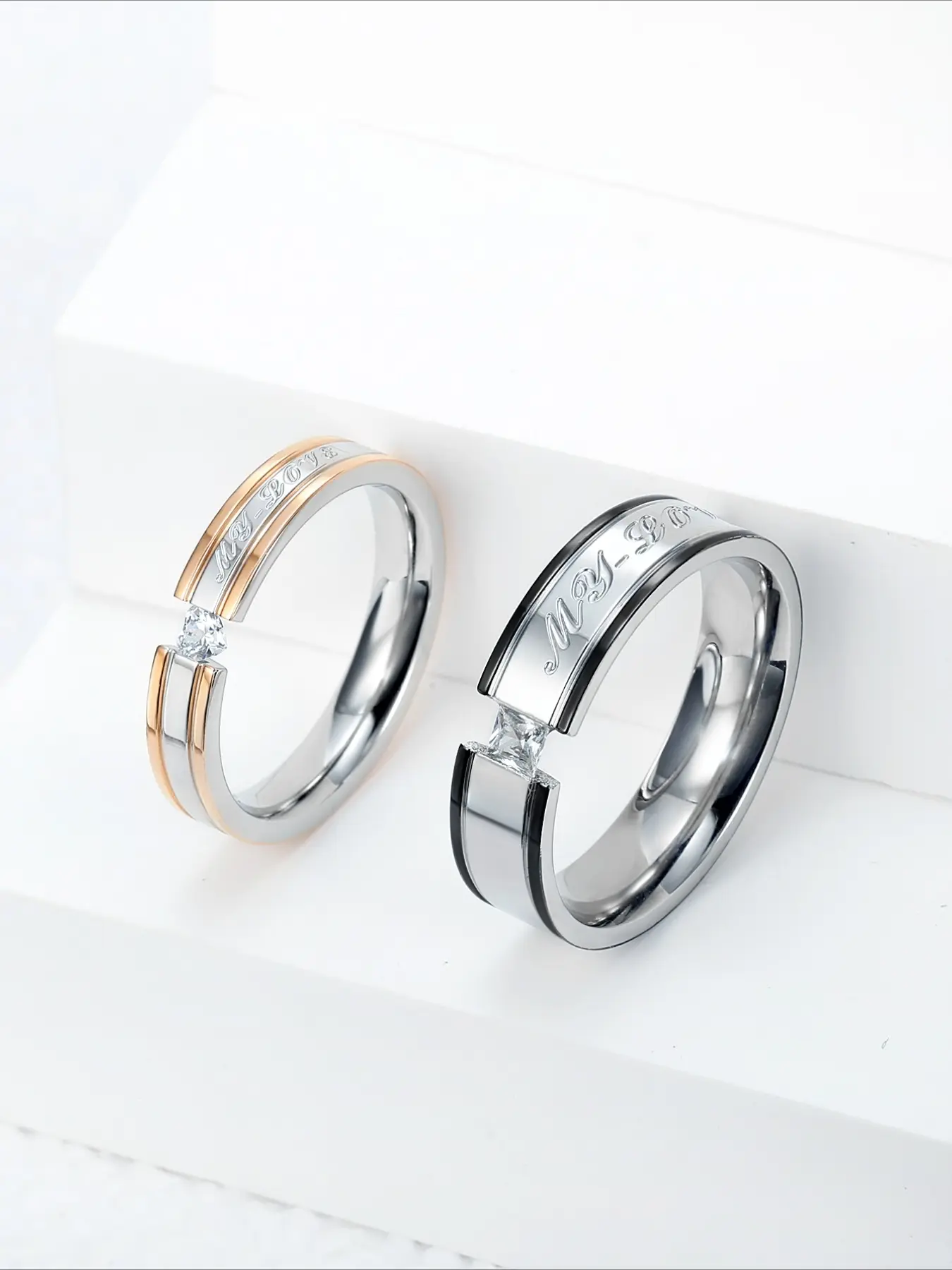 Minimalist and Luxurious Zircon Couple Ring with An Open Mouth, Stainless Steel That Does Not Fade, Gift for Lovers, Anniversary Gift