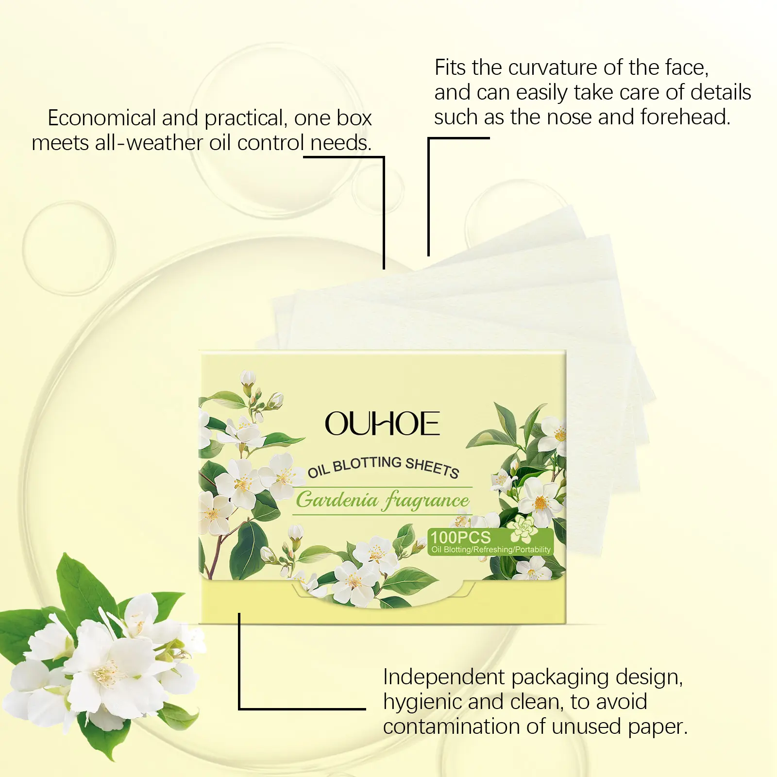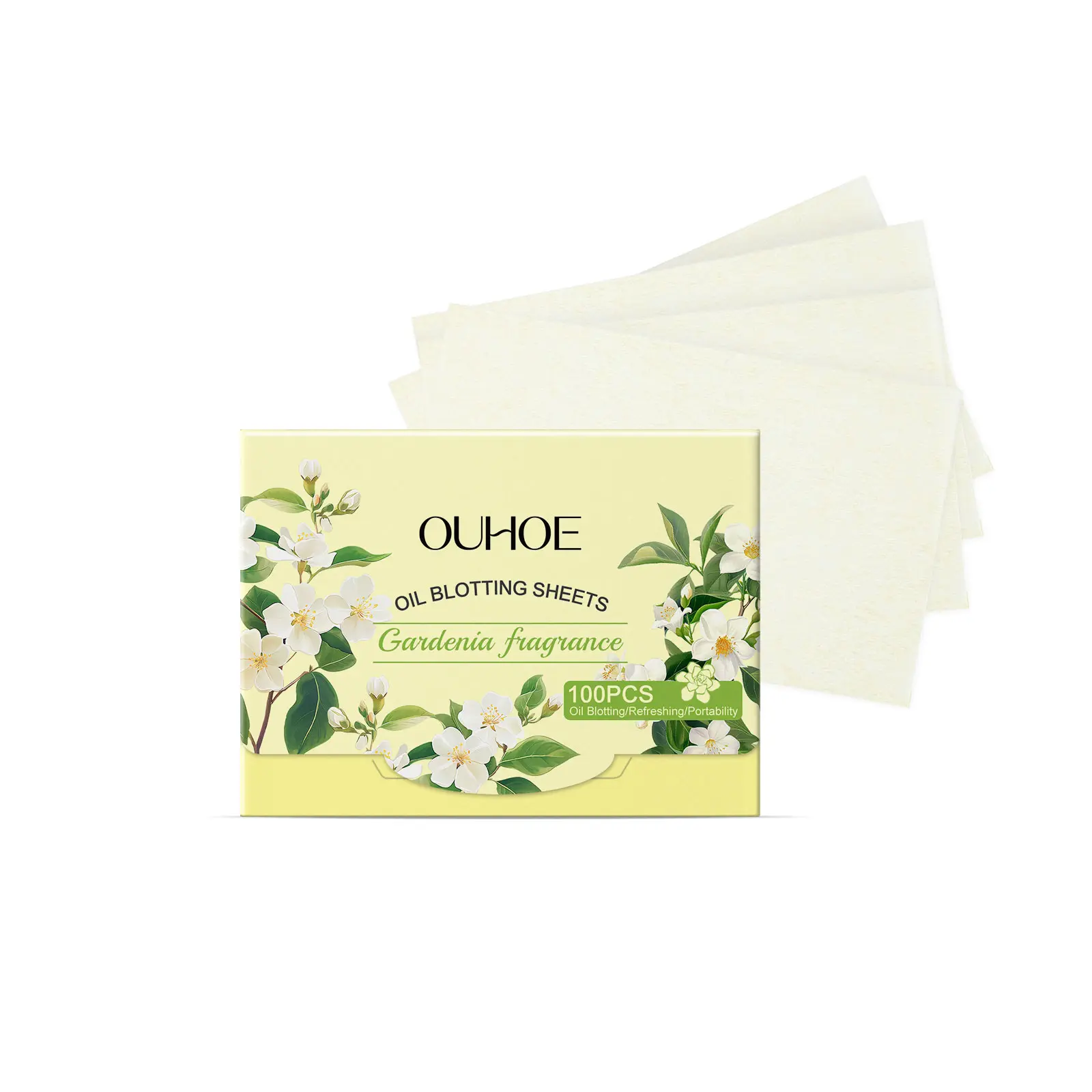 5. OUHOE Oil Blotting Sheets (Gardenia), Cellulose & Kaolin Dual Oil Control, Gardenia Extract Brightening + Vitamin E Antioxidant, Makeup-Friendly No Powder Removal, Soft for Oily Skin