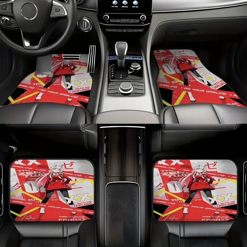 5. 4-Piece Anime Series Style Pattern Rubber Mats, Non-Slip Carpets, Easy-Clean Accessories, Synthetic Rubber Material, Suitable for Front and Back Seats in Vehicles