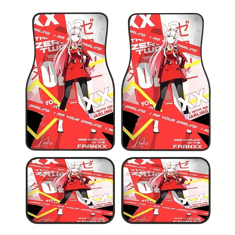 4-Piece Anime Series Style Pattern Rubber Mats, Non-Slip Carpets, Easy-Clean Accessories, Synthetic Rubber Material, Suitable for Front and Back Seats in Vehicles