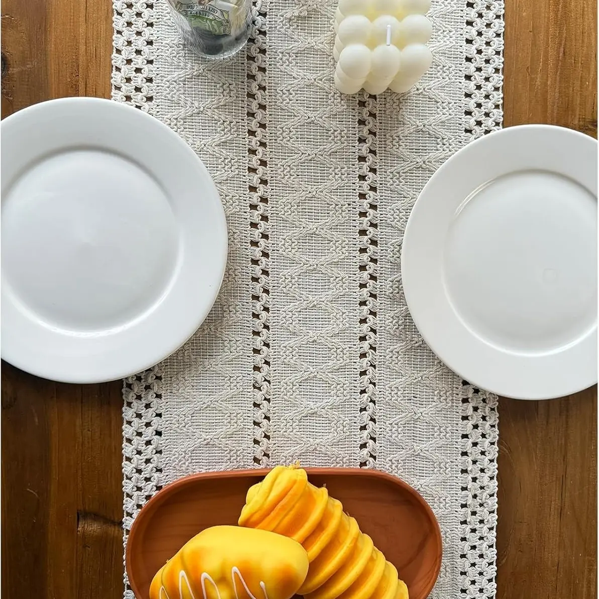5. Macrame Table Runner Boho Table Runners with Tassels Hand Woven Cotton Table Runner Rustic Farmhouse Table Runners for Bohemian Kitchen Dining Table(30x183cm/12x72in)