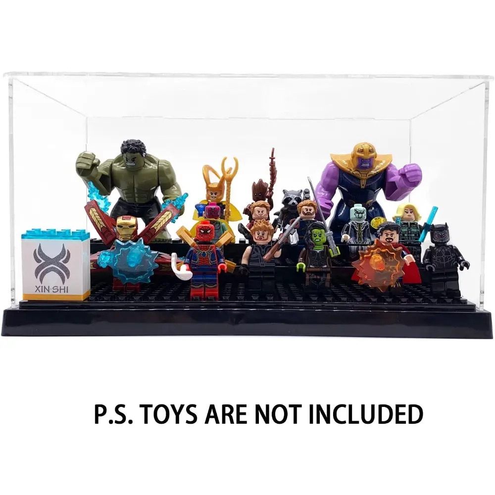 HIGH QUALITY TRANSPARENT ACRYLIC SHADOW ENCLOSE BOX: Made of Clear High Quality Acrylic which protects your minifigures from dust, heat and corrosion.
