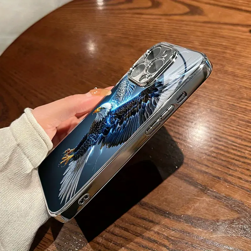 Lightning Eagle personalized pattern glass electroplated phone case with lens protection, suitable for iPhone 17 16 15 14 13 12 11 pro max