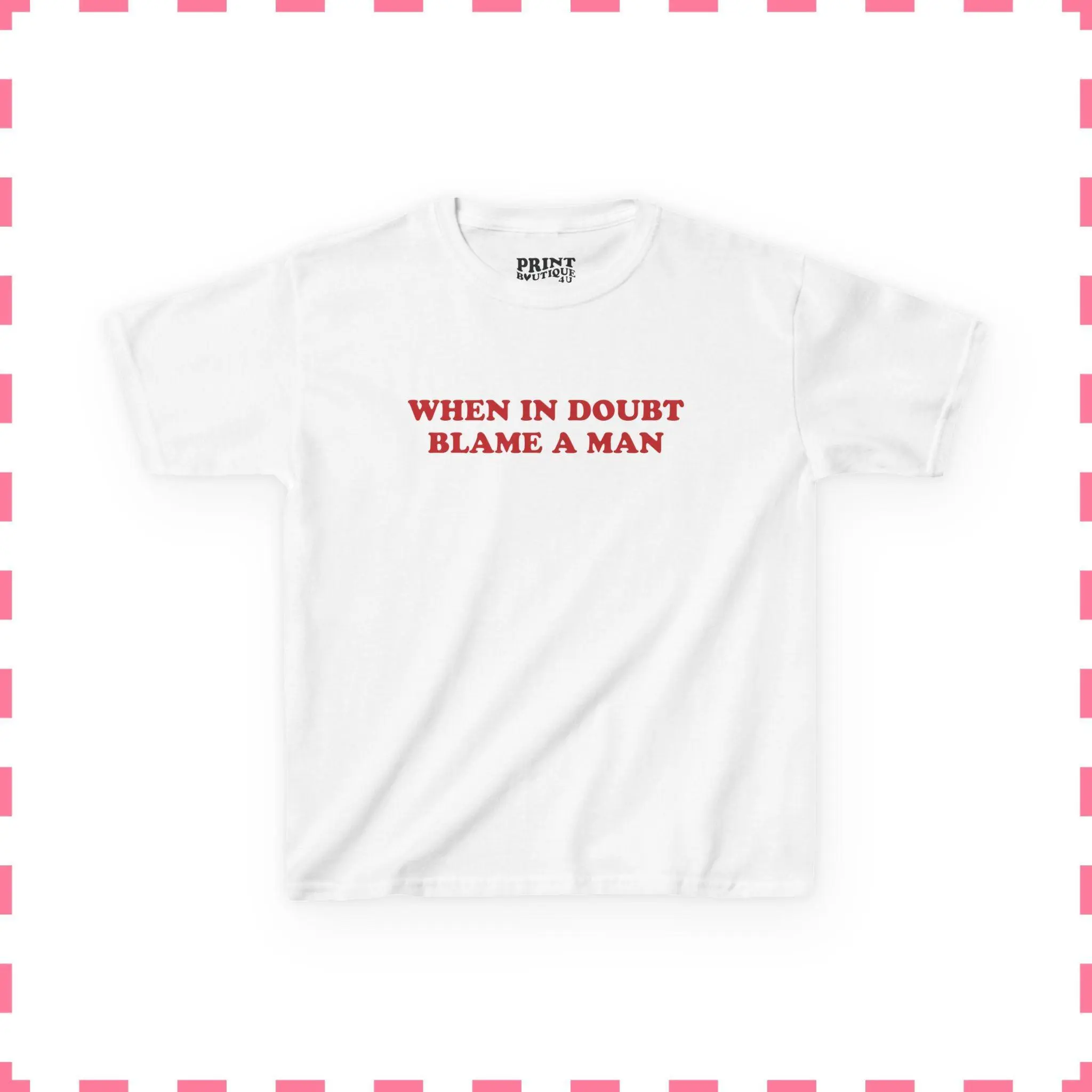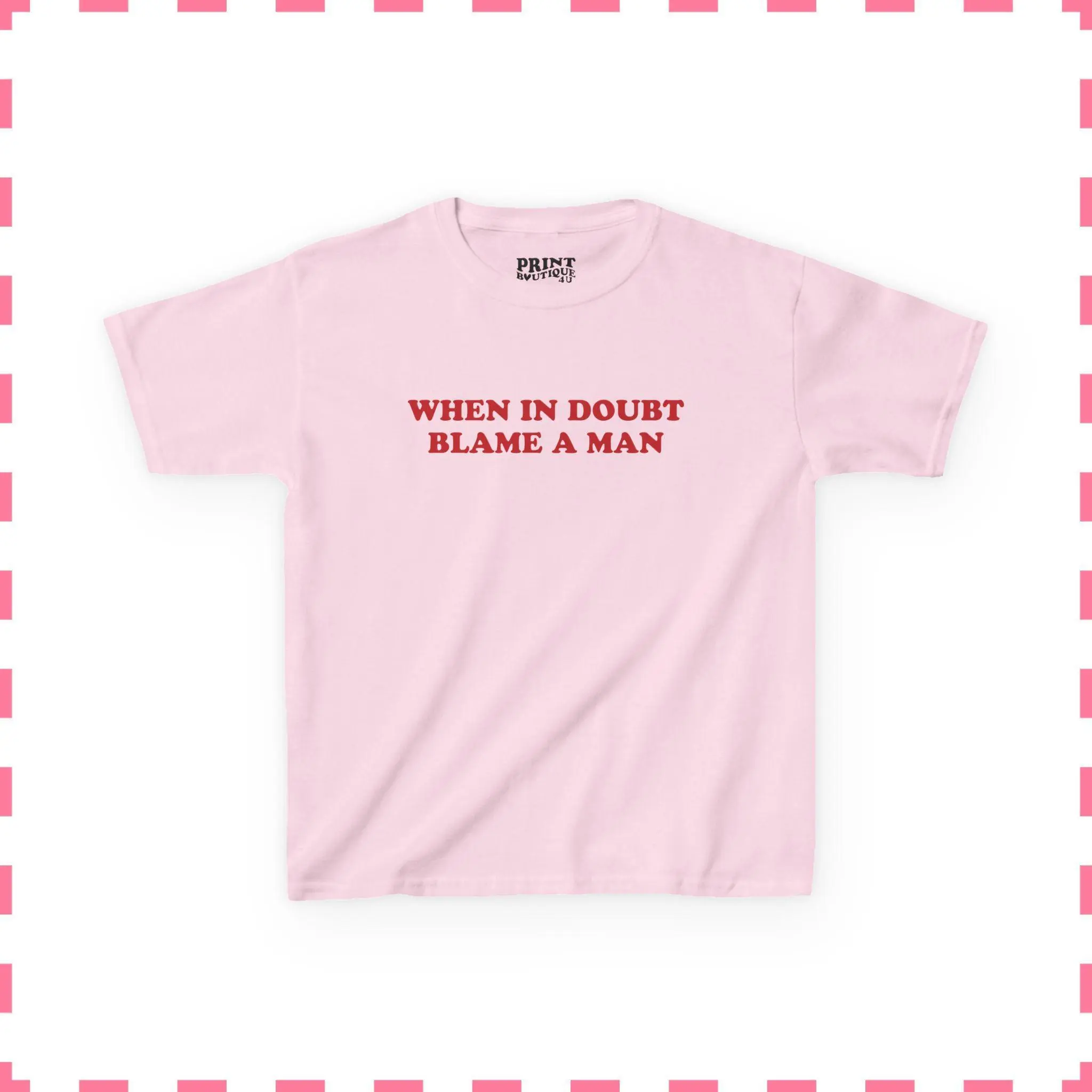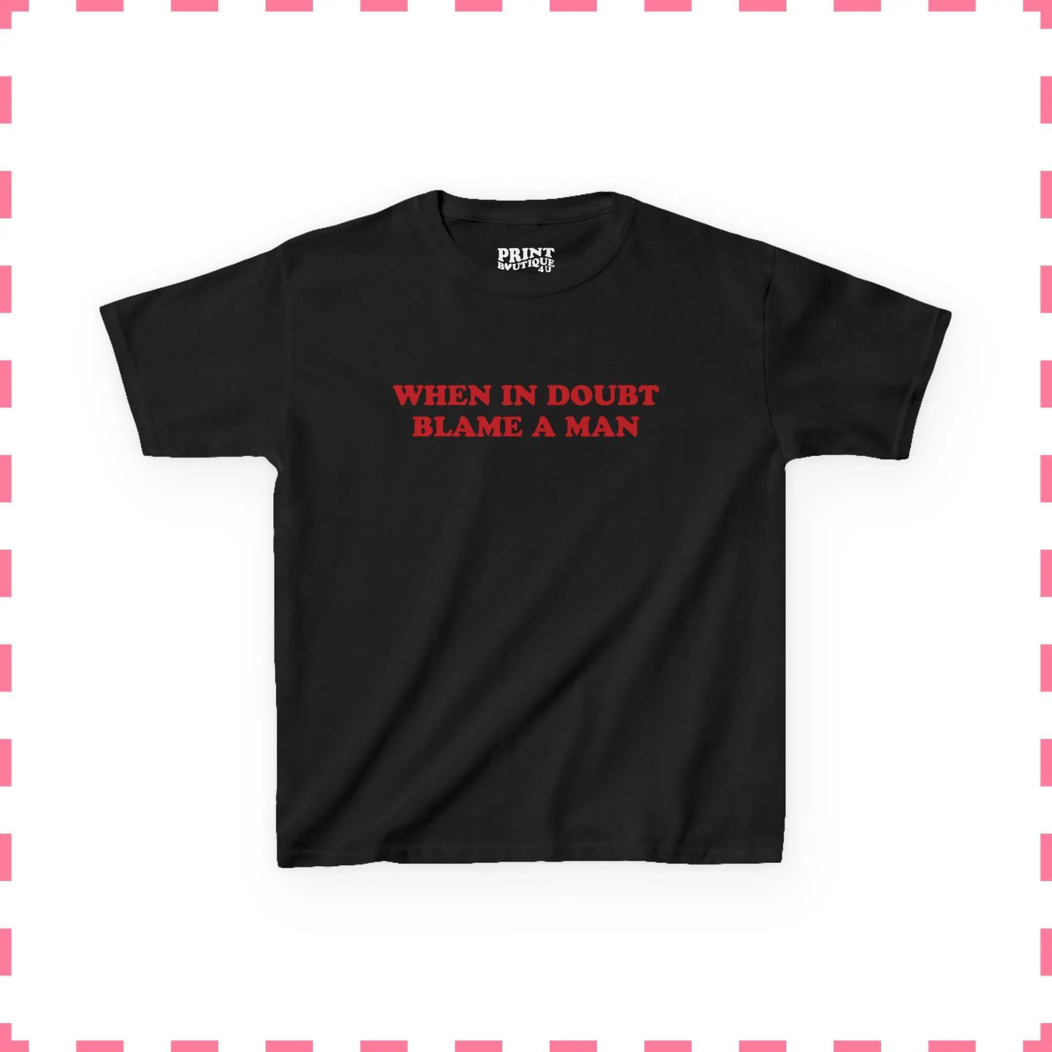 When In Doubt Blame A Man Baby Tee Funny Feminist Shirt Y2k Feminism Coquette Aesthetic Cropped Top Trendy Baby Tee Funny Gift For Her