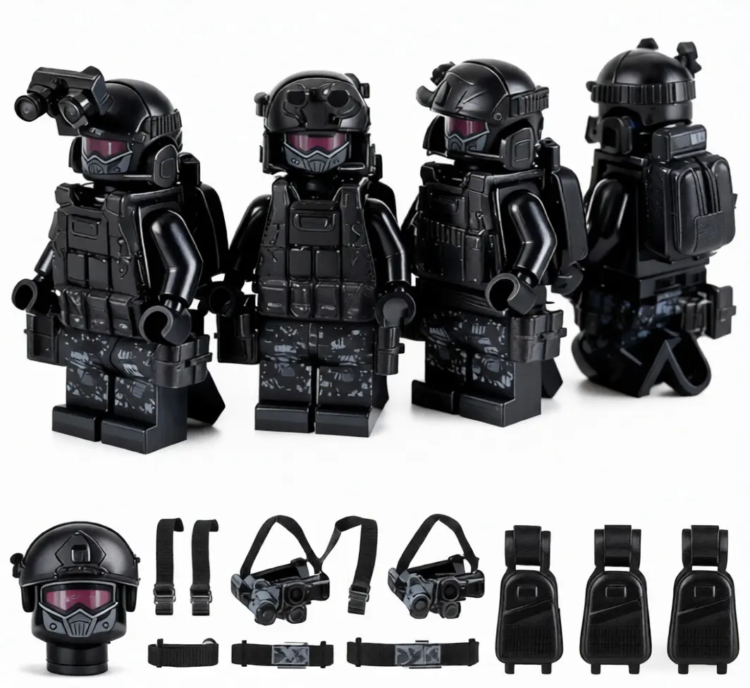 6 PCS Wolf Warrior Special Forces Squad Set - Compatible Building Blocks Military Minifigures, Commando Army Men, Small Bricks STEM Toy for Boys